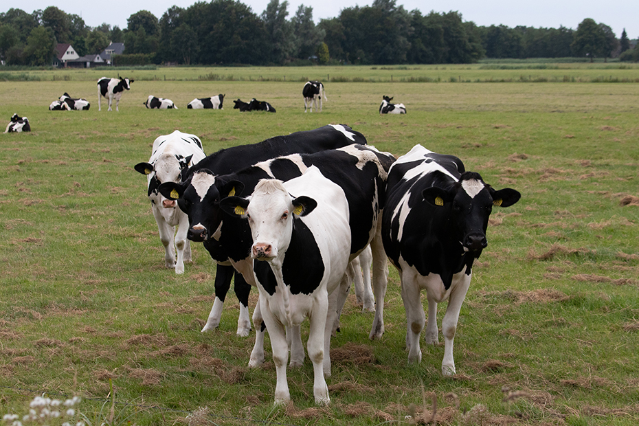Aanvankelijk keken de jonge koeien (pinken) niet naar ons om. Even later werden ze toch nieuwsgierig en kwamen ze naar ons toelopen.