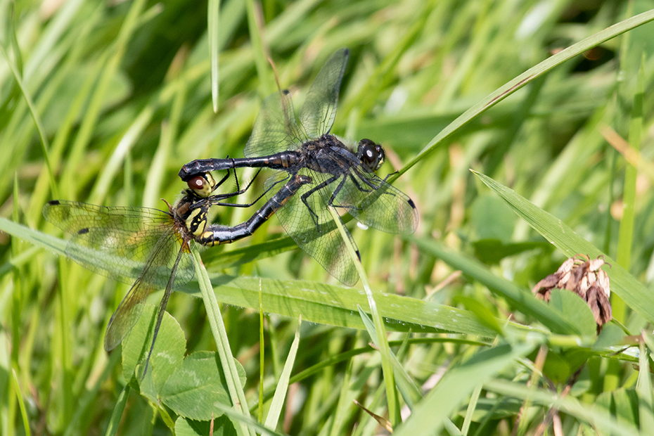 Een paringswiel van de zwarte heidelibel. Ik heb ze een tijdje gevolgd, maar een fotogeniekere plek zat er niet in.