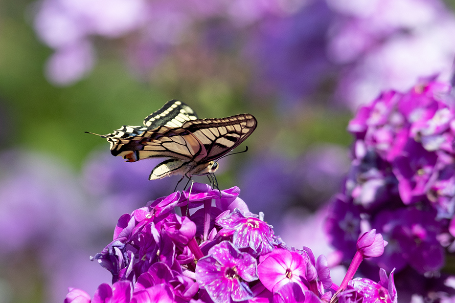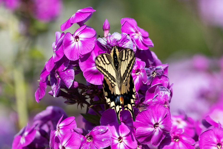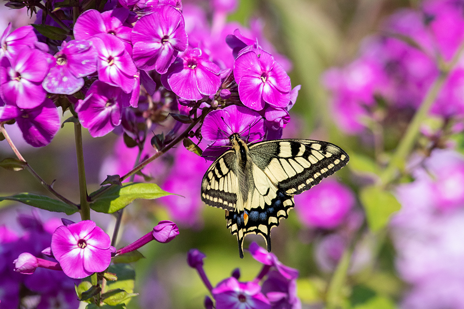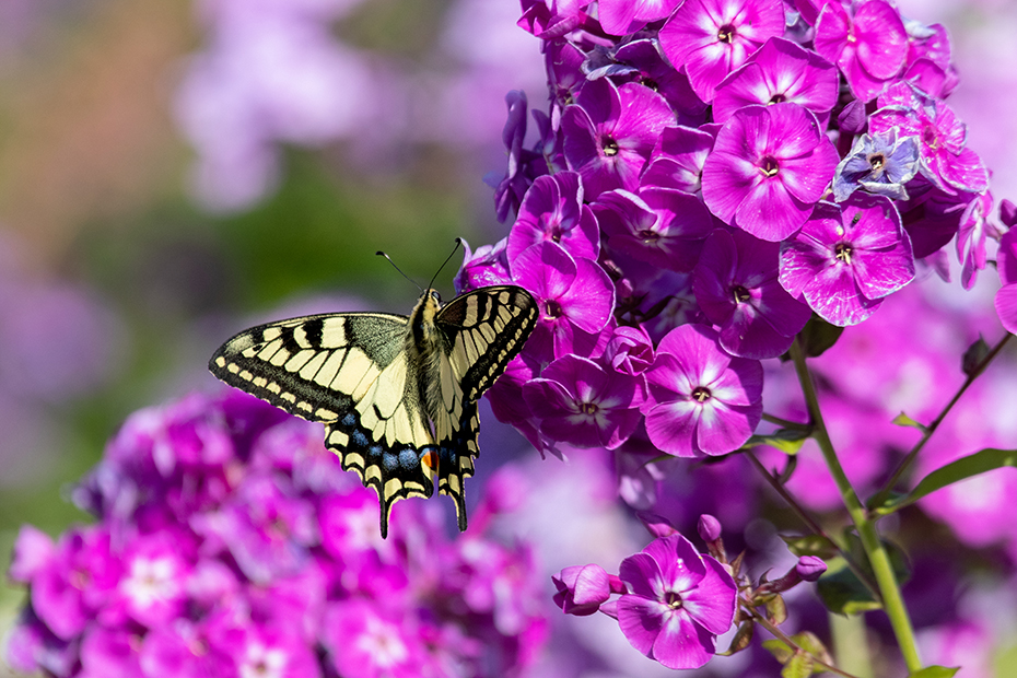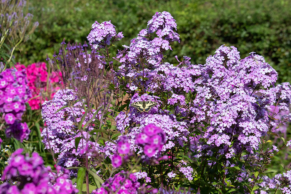 Het was een feest om daar te fotograferen. Behalve zicht op de mooie vlinder was de lucht bezwangerd met de geur van phloxes.