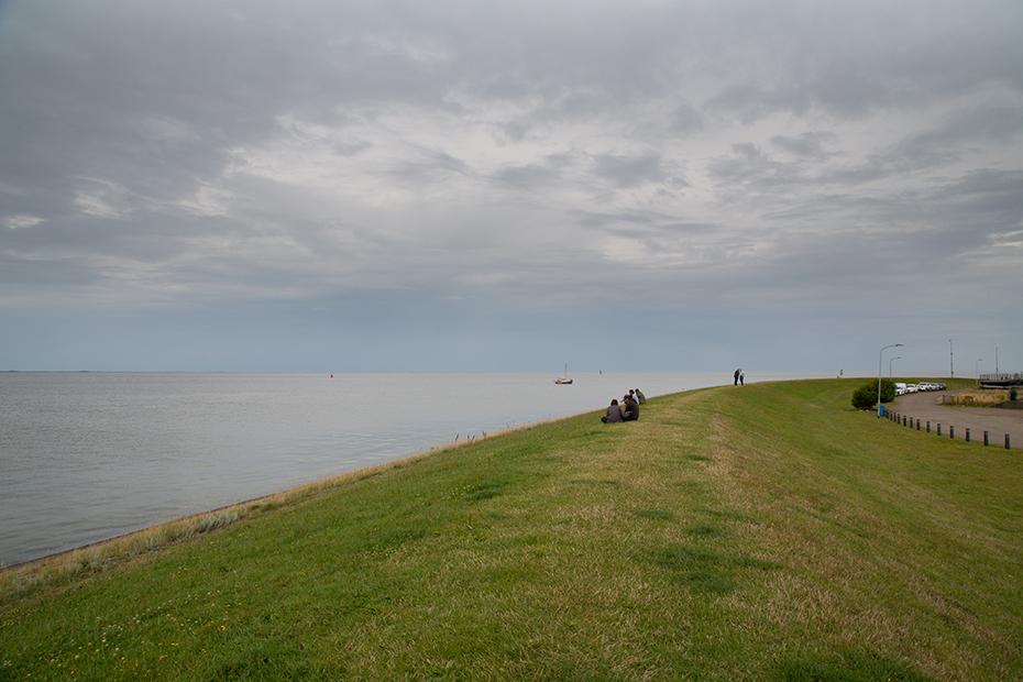 Ik zette mijn fiets onderaan de dijk en liep de dijk op.