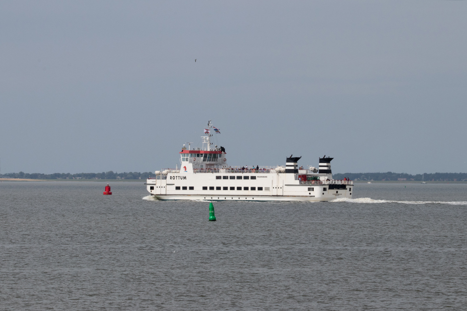 De veerboot van 15.30 uur voer de haven uit op weg naar Schiermonnikoog.