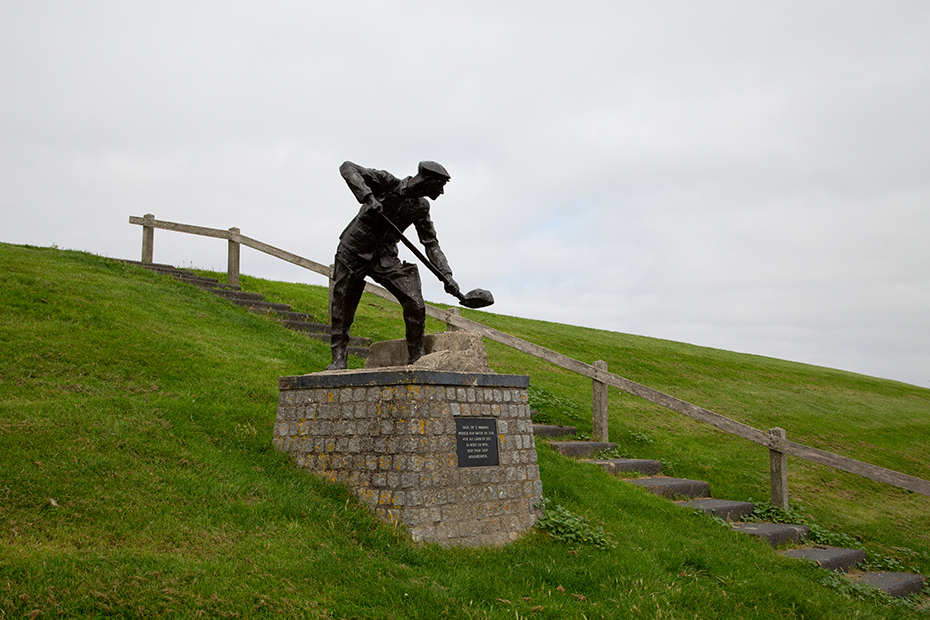 Als je vanaf de parkeerplaats richting de Waddendijk bij Zwarte Haan loopt dan springt het beeld van de Slikwerker al in het oog.