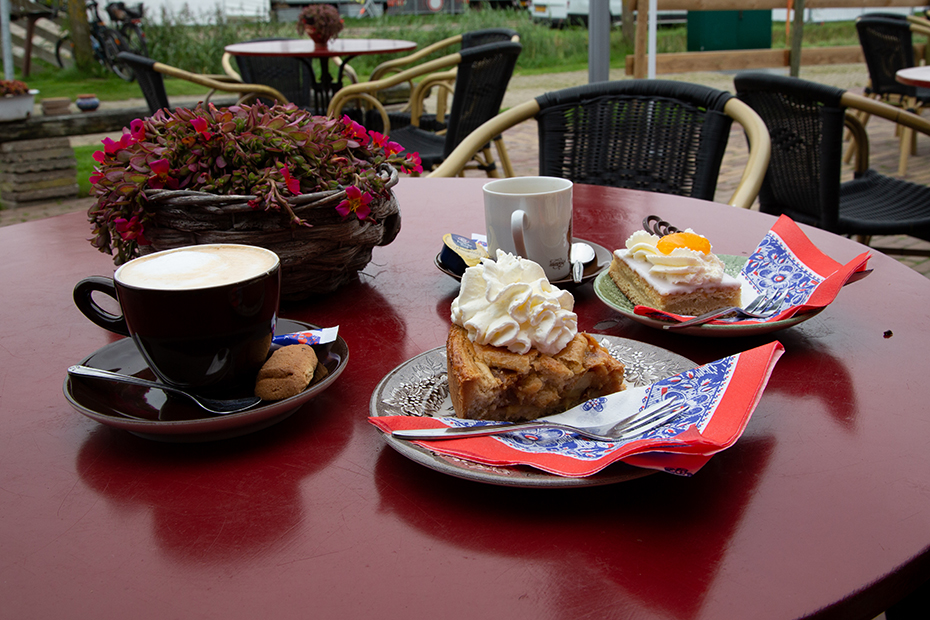 Aan de overkant streken we neer op een terras voor we onze weg vervolgden. De koffie met wat lekker lieten we ons goed smaken.