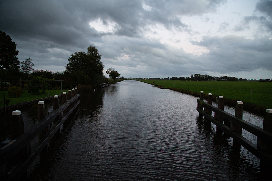 Overdag was het een mooie herfstdag, maar aan het einde van de maandag sloeg het weer om. Er vielen fikse regenbuien en er stond een stevige wind. Toen het weer droog was ging ik met de camera naar het kanaal Steenwijk – Ossenzijl. Een paar kilometer verderop deed onze dochter op dat moment examen voor het roeien. Wat betreft het praktijkexamen trof ze het dus niet. Wind is namelijk heel lastig bij het roeien in de instabiele Skiff. De kans was groot dat het praktijkexamen daarom zou worden uitgesteld…