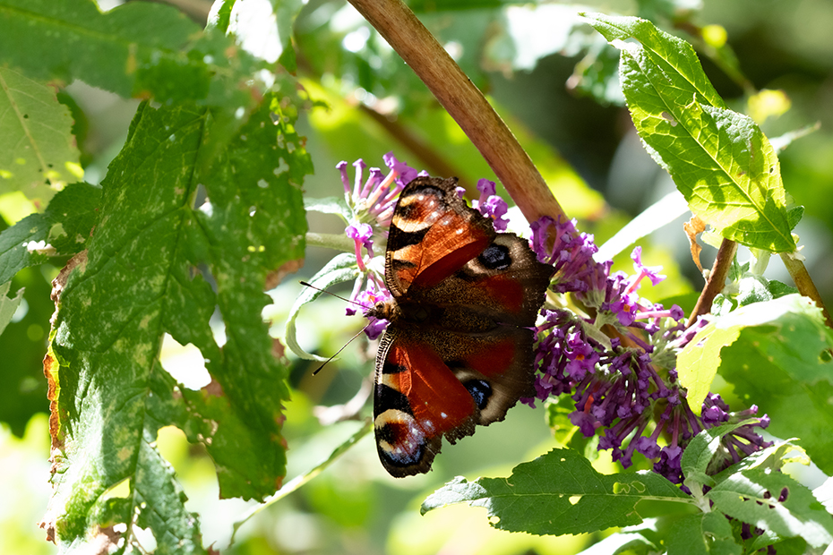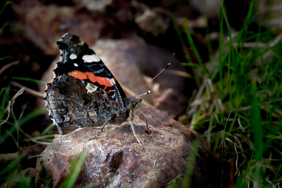 Zoals gebruikelijk begon ik op een afstandje te fotograferen en kwam dan behoedzaam dichterbij. De atalanta’s vlogen echter weg voordat ik ze beeldvullend kon vastleggen.