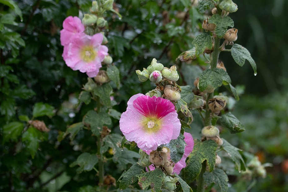 In onze voortuin staan stokrozen. Een van de bloemen heeft twee kleuren. Afgelopen weekend maakte ik tussen de buien door enkele foto’s.