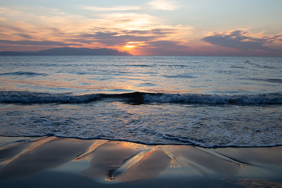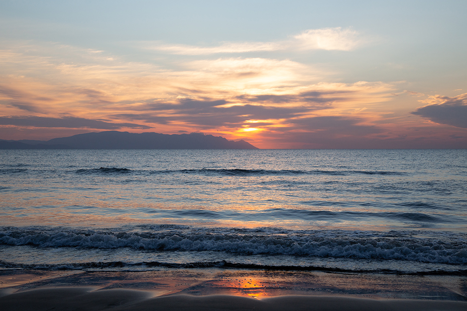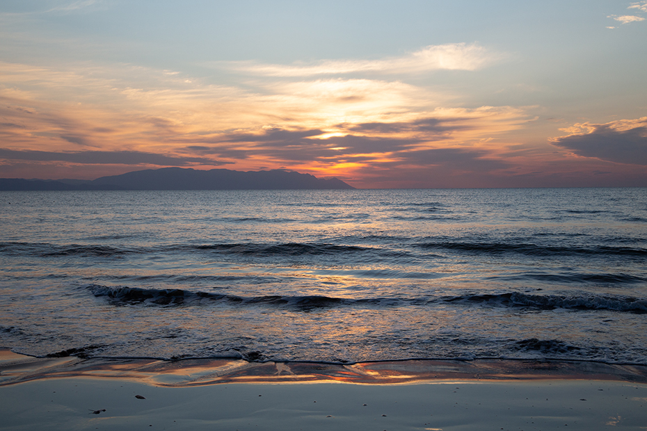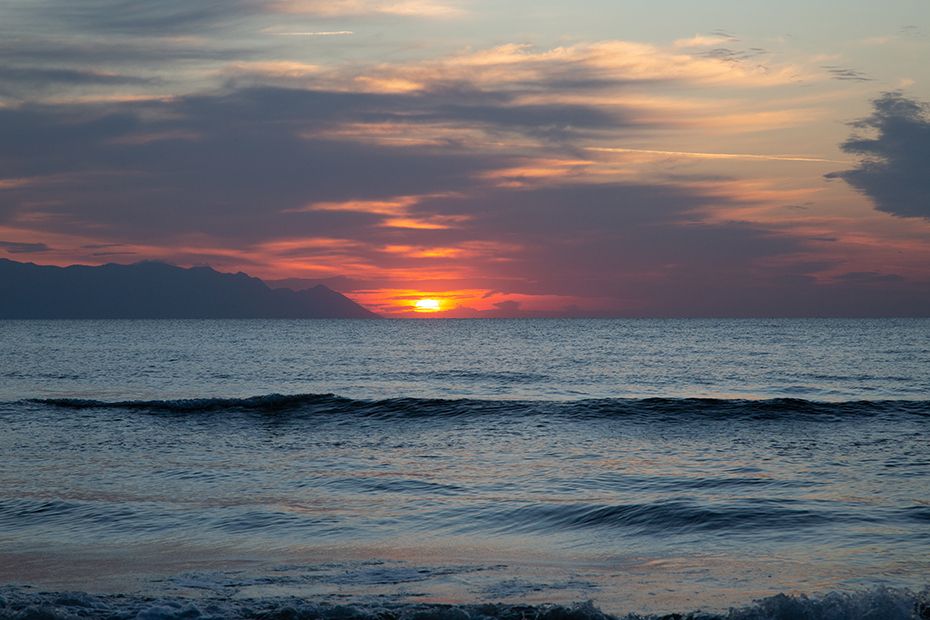 Dagelijks wandelde ik door de tuin naar het strand om te genieten van de ondergaande zon.