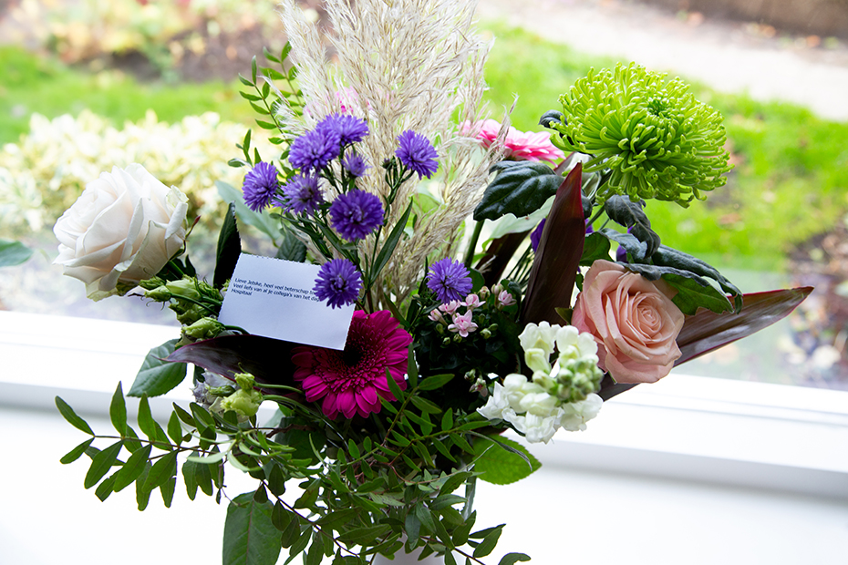 Ik werd net verrast met een prachtige bos bloemen van mijn collega’s. Deze kleurrijke bos leek me een mooie tegenhanger op bovenstaande saaie foto.