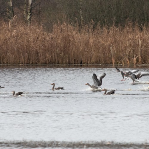Op een zaterdag met grijs weer was ik in vogelkijkhut Skiere Goes in Easterskar. Ik was daar in de hoop om een waterral te zien en te fotograferen. Dat is helaas niet gelukt. Voor de rest viel er ook weinig te beleven. De vogels die er waren zaten ver weg.