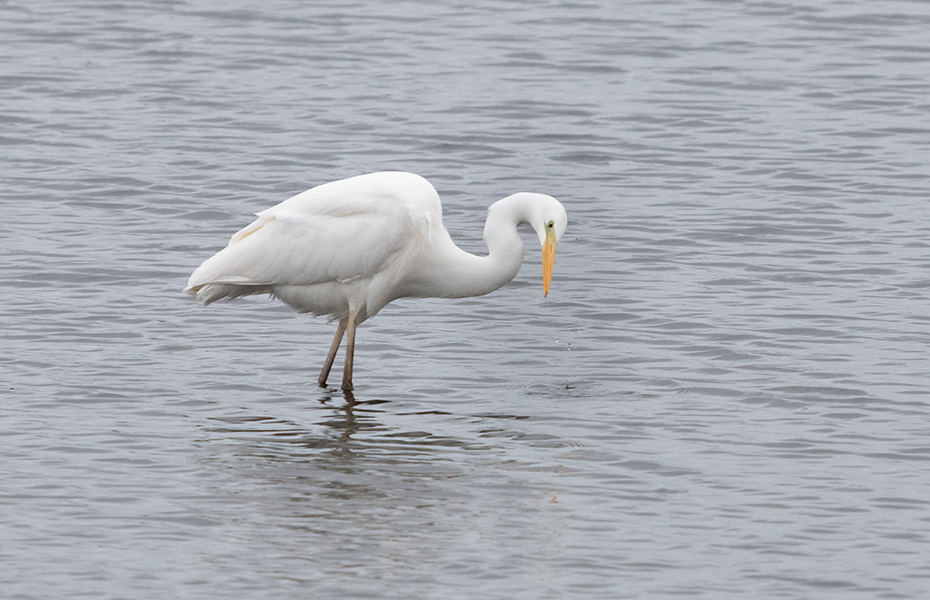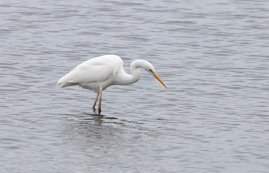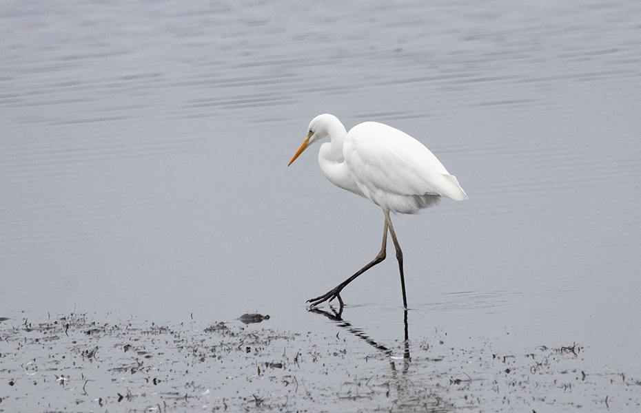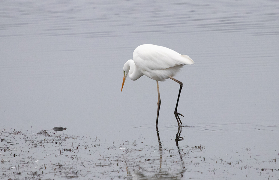 De zilverreiger wandelde naar dieper water om daar te foerageren.