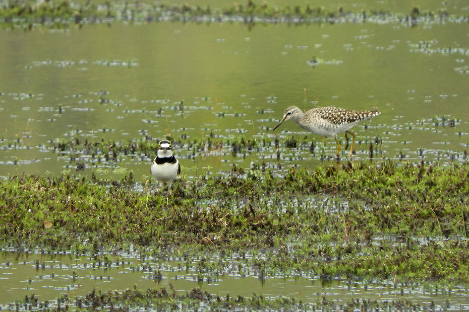 Terwijl ik mijn camera richtte op de groenpootruiter zag ik op een eilandje een veel kleiner vogeltje rondscharrelen.