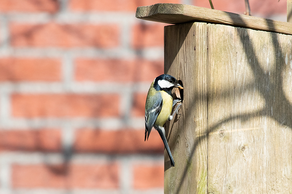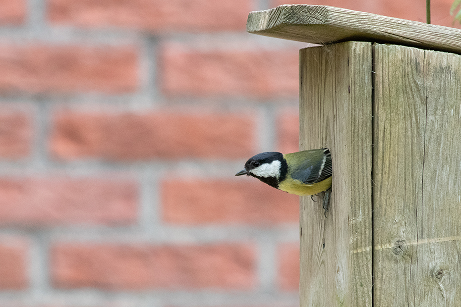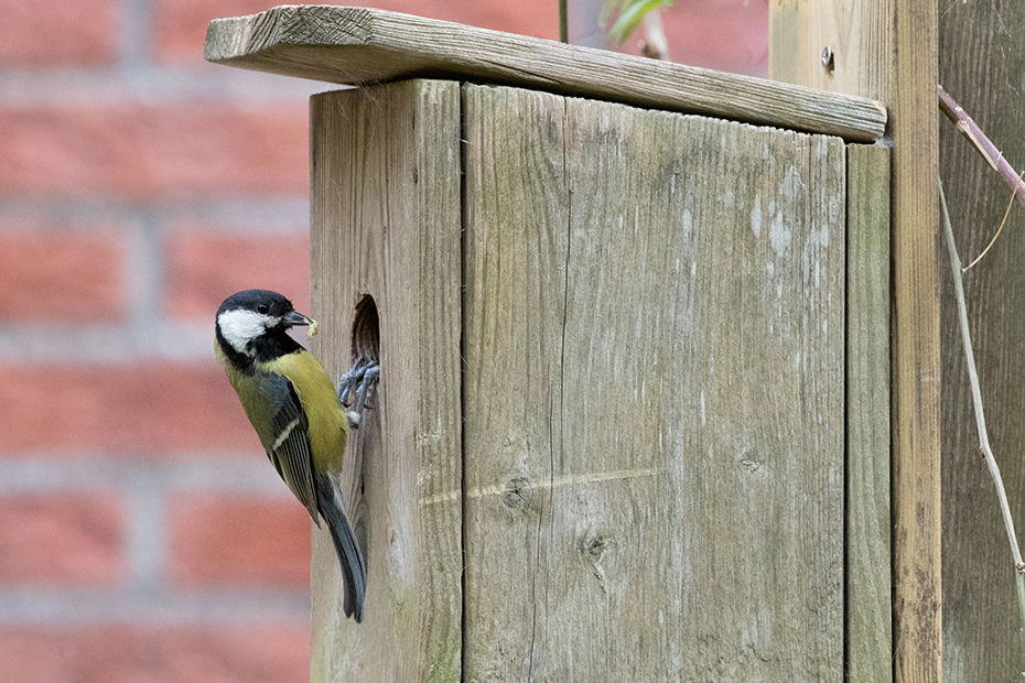 Het nestkastje naast ons terras was bezet door koolmezen. De ouden waren druk met de aanvoer van voedsel voor de hongerige jongen en het afvoeren van de poepjes.