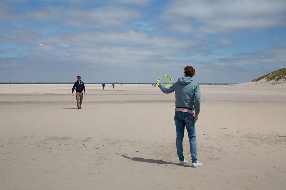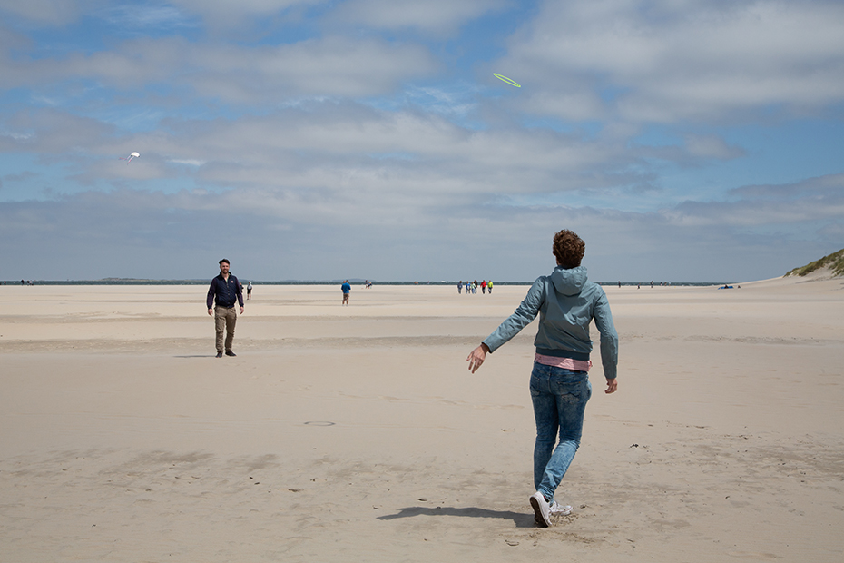 Maar voordat het zover was overbrugden we die tijd op het strand bij de vuurtoren. Ze hadden een supersonische frisbee gekocht en vermaakten zich lange tijd met het overgooien van de frisbee. Er valt altijd genoeg te beleven op dat strand. Het is bij uitstek een strand om te vliegeren.