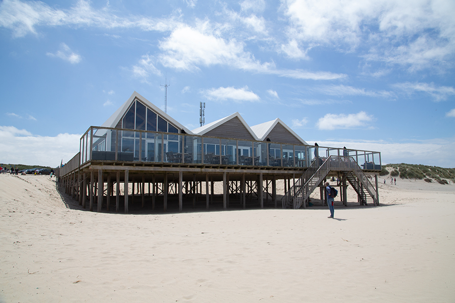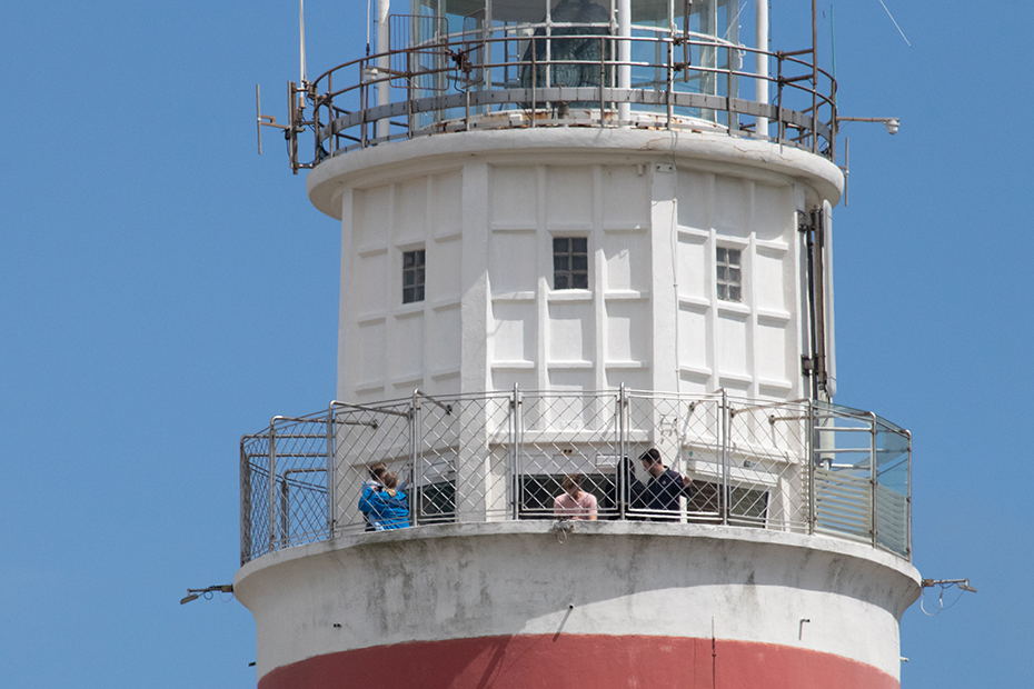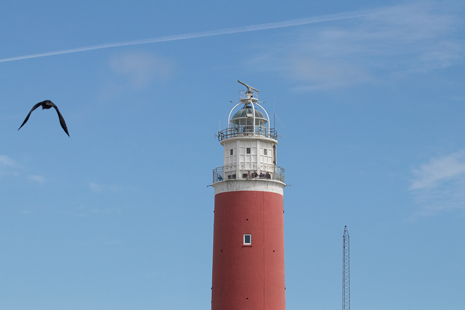 Toen het voor de jongens tijd was om de vuurtoren te beklimmen gingen onze dochter en ik op het terras van de strandtent zitten. Uiteraard heb ik nog wel enkele foto’s gemaakt van de jongens op de vuurtoren.