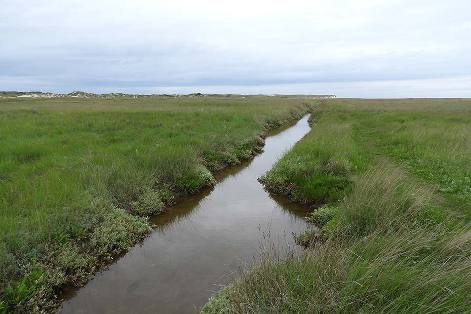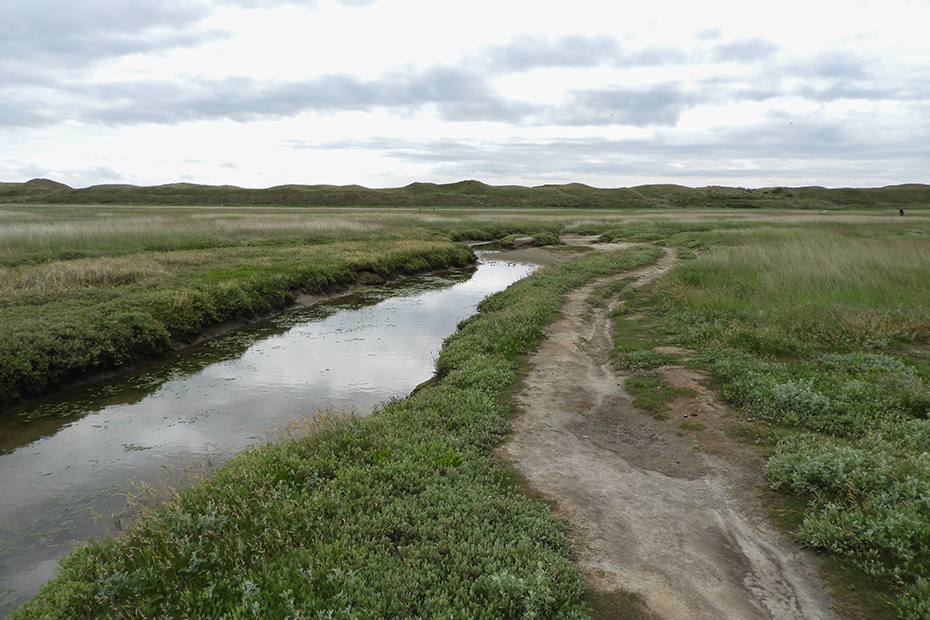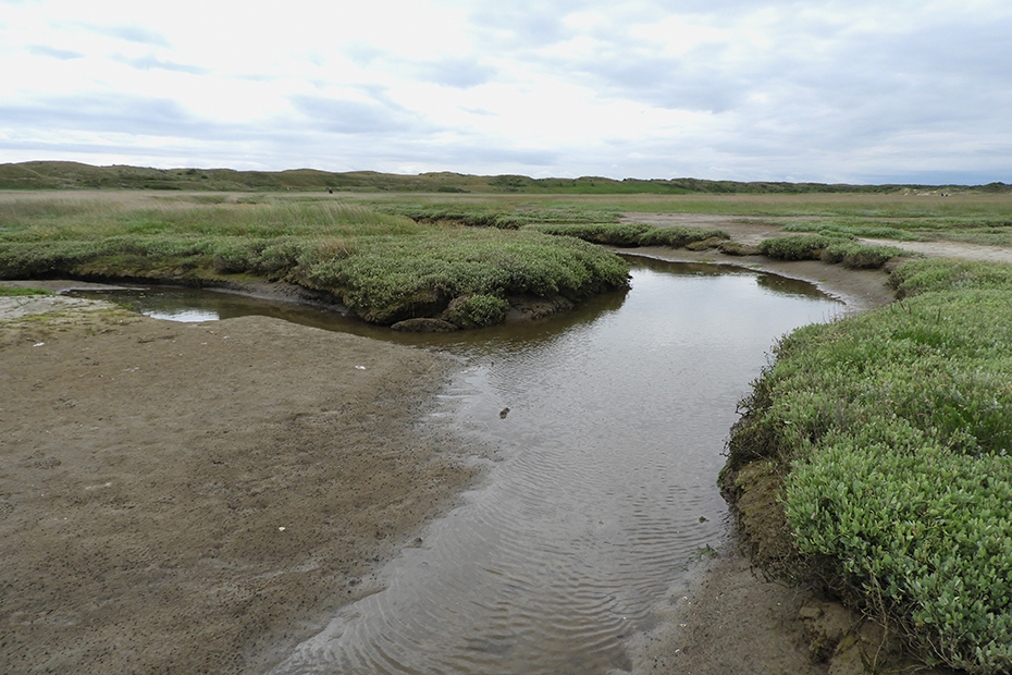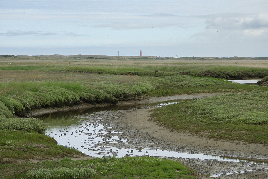 De Slufter is een uniek gebied dat in open verbinding staat met de Noordzee. Na een aantal mislukte pogingen om er een landbouwpolder van te maken, werd aan het begin van de 20e eeuw besloten het zeegat open te laten. Het Sluftergebied bestaat uit een krekenstelsel dat soms na een storm onder water staat. Je vindt er zouttolerante planten als zoutmelde, zeekraal, de geurige zeealsem en het lamsoor, waarvan de bloemen in de zomer het hele gebied paars kleuren. Het grootste deel van De Slufter wordt als vogelbroed en -rustgebied beheerd. Alleen het zuidelijke gedeelte is vrij toegankelijk. Je kunt vanaf de Sluftertrap het pad volgen tot aan het strand. In het noordelijke stuk broeden veel vogels, zoals eidereend, bergeend en kluut. In de Sluftergeul leven zeedieren als krabben, garnalen en platvis. Bron is deze site. Wandel maar met ons langs het krekenstelsel.