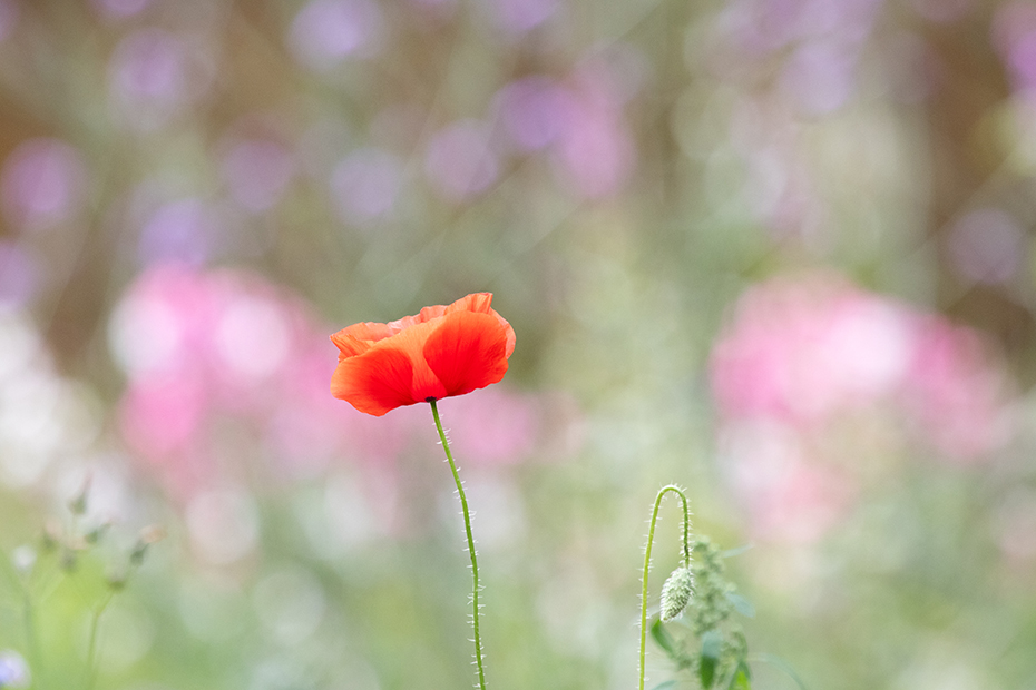 We zijn blij met de nieuwe inrichting van deze border. Zittend onder veranda zoomde ik met de 100-400 objectief op de border. Door de beperkte scherpte/diepte ontstond deze foto.