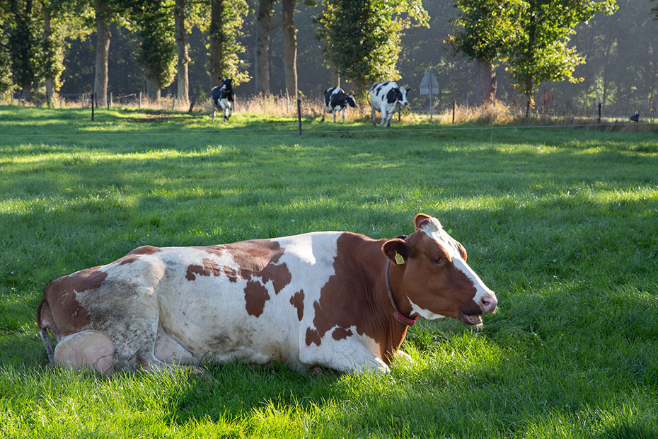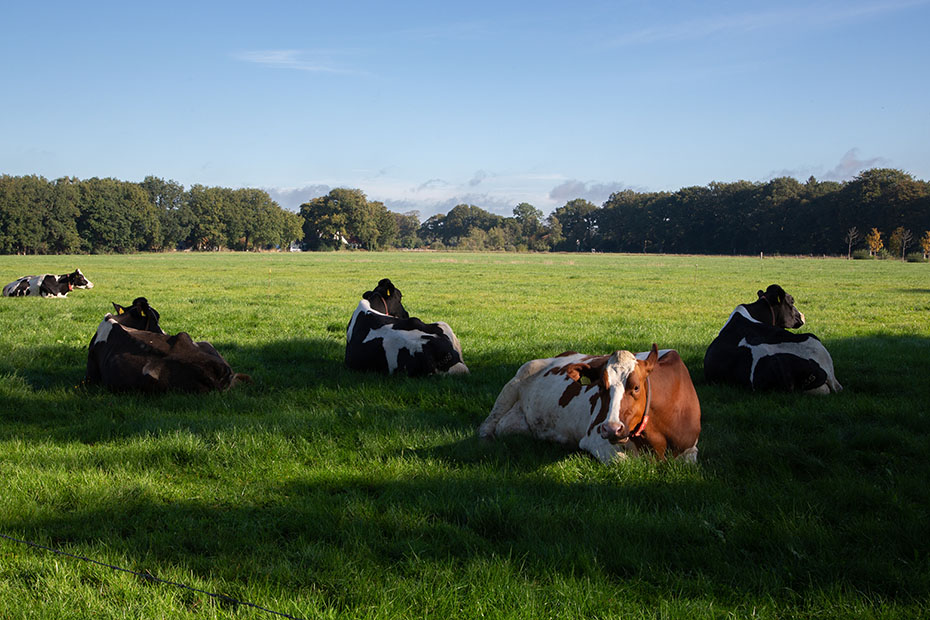 Op een mooie ochtend reed ik richting De Eese. Ik stopte bij koeien die in alle rust lagen te herkauwen in een weiland naast de Koningin Wilhelminalaan.
