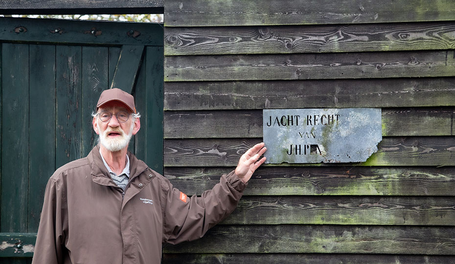 De vrijwilliger met zijn kooikerhondje wees ons de weg. Even daarvoor had hij ons verteld dat we het kooikerhondje niet moesten aanhalen. Kooikerhondjes hechten zich namelijk sterk aan hun baasje en diens familie en zijn gereserveerd tegenover vreemden. Even verderop kwamen we aan bij een schutting. De oprichter en kooiker Jan-Harmens Pen kreeg in 1885 vergunning om de kooi te exploiteren. Het eeuwenoude bordje op de schutting herinnert aan die periode.