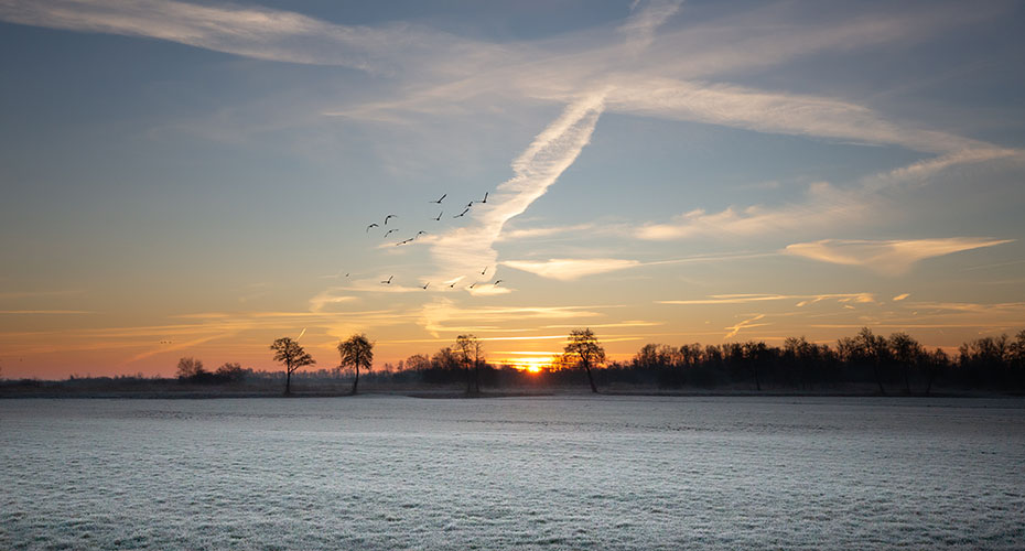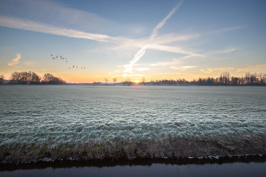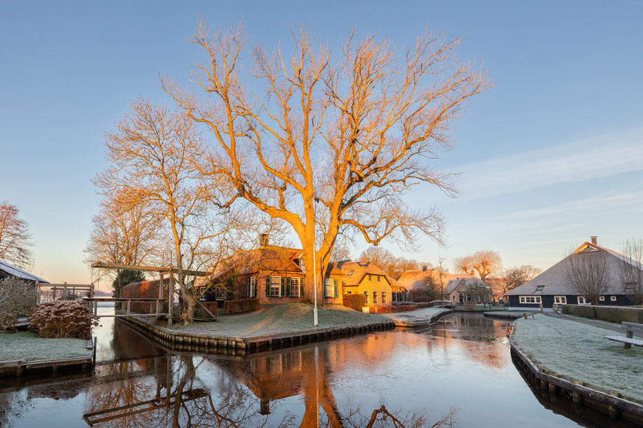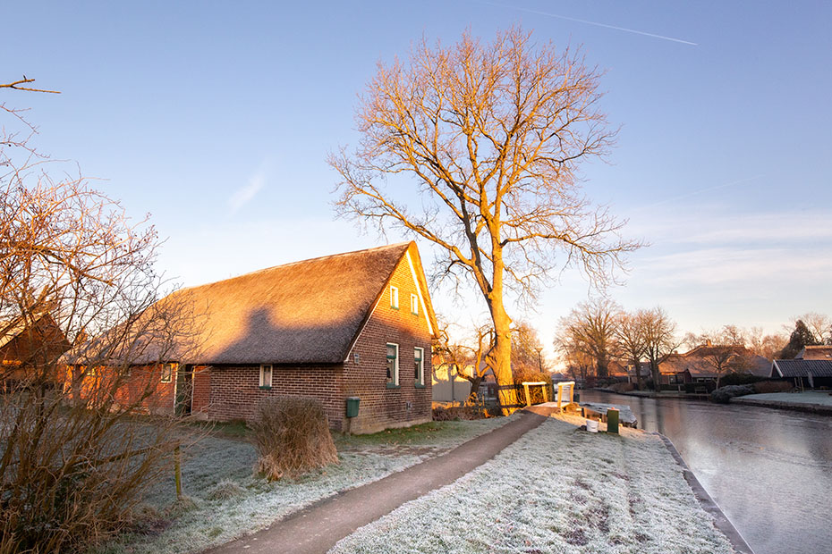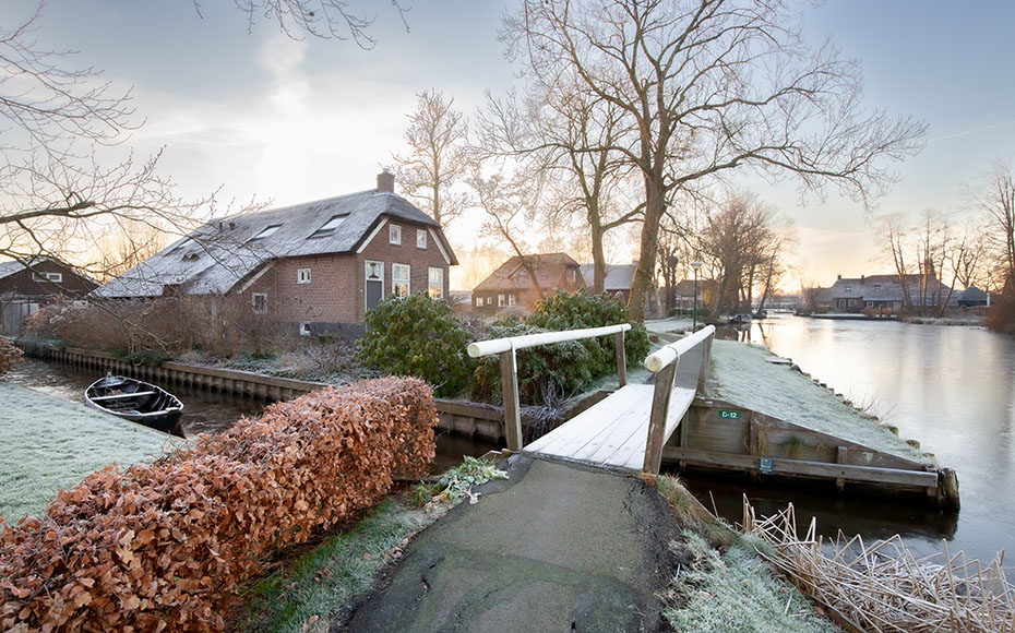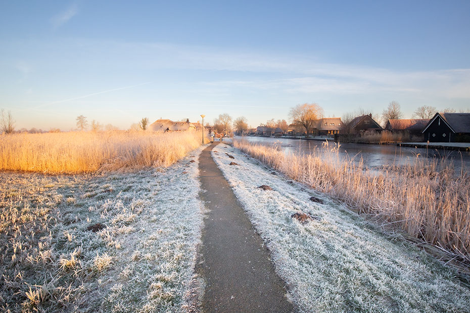 Het dorp Dwarsgracht wordt aan alle kanten omringd door natuur en rietlanden.