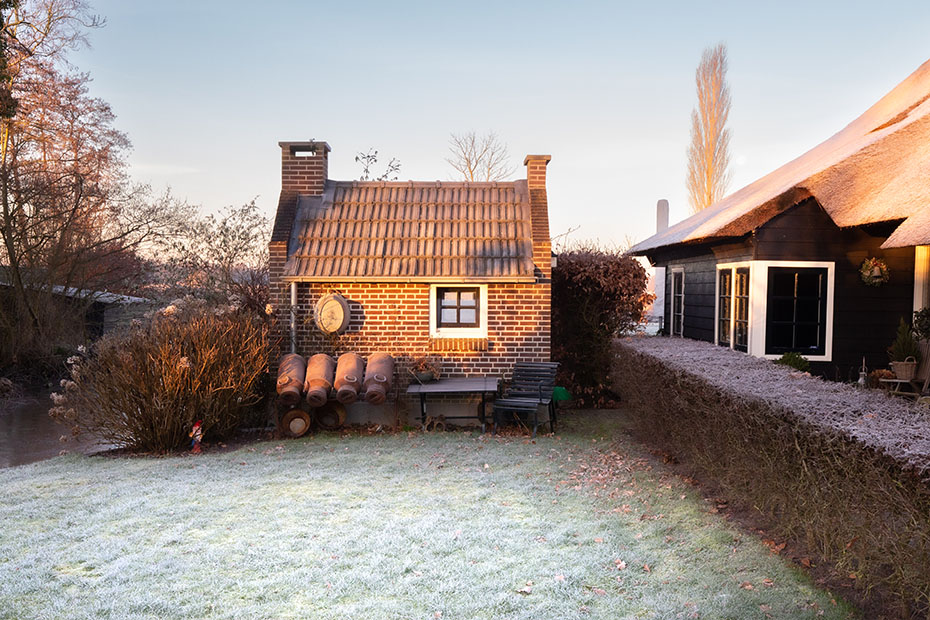 Ik weet niet of het huis op onderstaande foto’s het oudste huis is in Dwarsgracht, het ziet er in ieder geval wel authentiek uit. Op de linker foto zie je het huis vanaf het zuiden en op de rechter foto het huis vanaf de noordkant. Een rieten dak aan de noordkant heeft meer te lijden dan aan de zuidkant en dat is te zien op de foto´s.