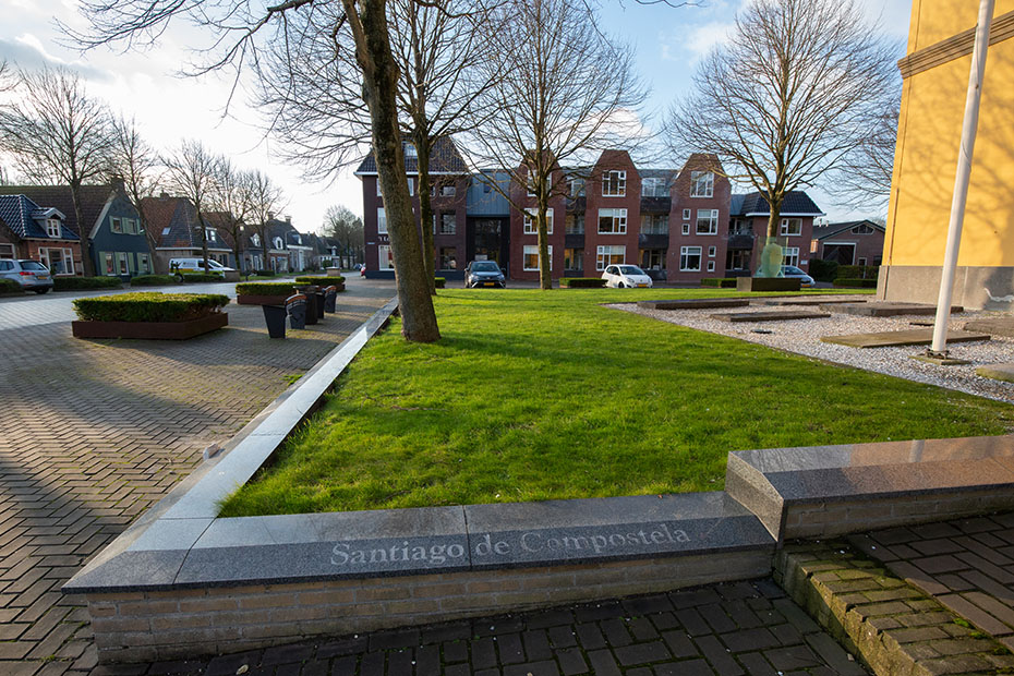 Het Jabikspaad is 130 kilometer lang en loopt tot aan Hasselt in de Kop van Overijssel. Daar komt ook het Gronings-Drentse Jacobspad aan, om vervolgens via Deventer, Nijmegen en Maastricht aan te sluiten op andere pelgrimsroutes naar Santiago de Compostela. Zowel het startpunt Sint Jacobiparochie (‘parochie van Sint Jacob’) in Friesland, als het gehele netwerk van pelgrimsroutes en Santiago de Compostela zelf zijn gewijd aan Sint Jacobus. Bron is deze site. In het muurtje rondom de kerk staan 37 (grote) plaatsnamen die men op weg naar Santiago de Compostella passeert. Ik laat er hier een aantal zien.