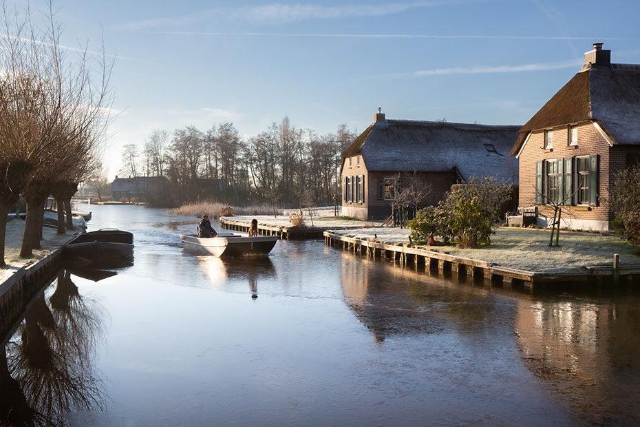 Als het weer dusdanig is dat er kans is op serieus schaatsijs dan vaart men niet meer door de grachten.