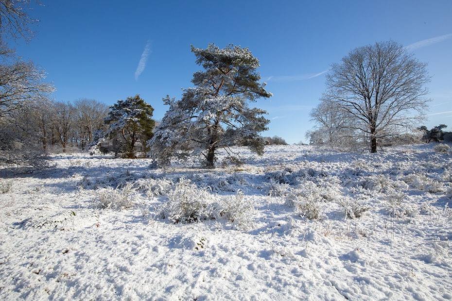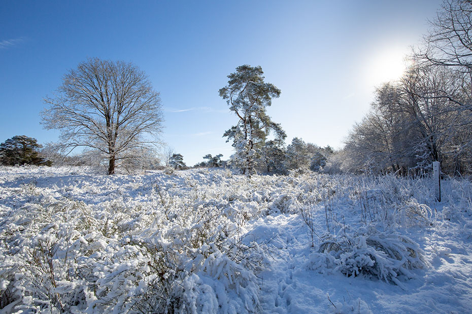 Na de wandeling door het besneeuwde landschap bij de Hunebedden reed ik via een andere weg weer naar huis. Toen ik over de Van Helomaweg reed richting Darp zag ik aan de oostkant een prachtig besneeuwd landschap. Ik besloot nog een stop te maken. De zon had hier nog geen vat gekregen op de sneeuw.