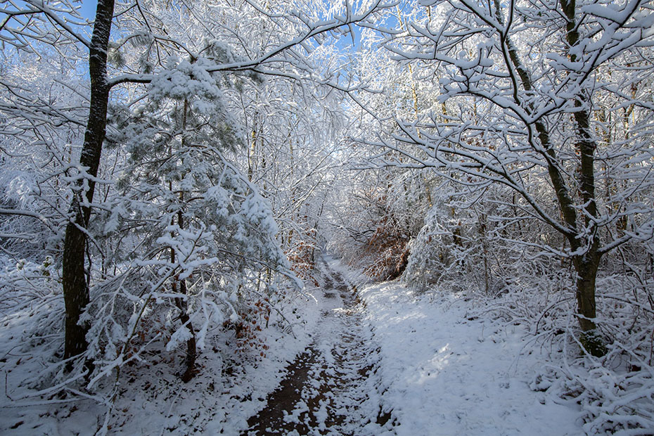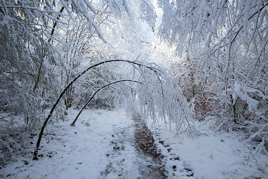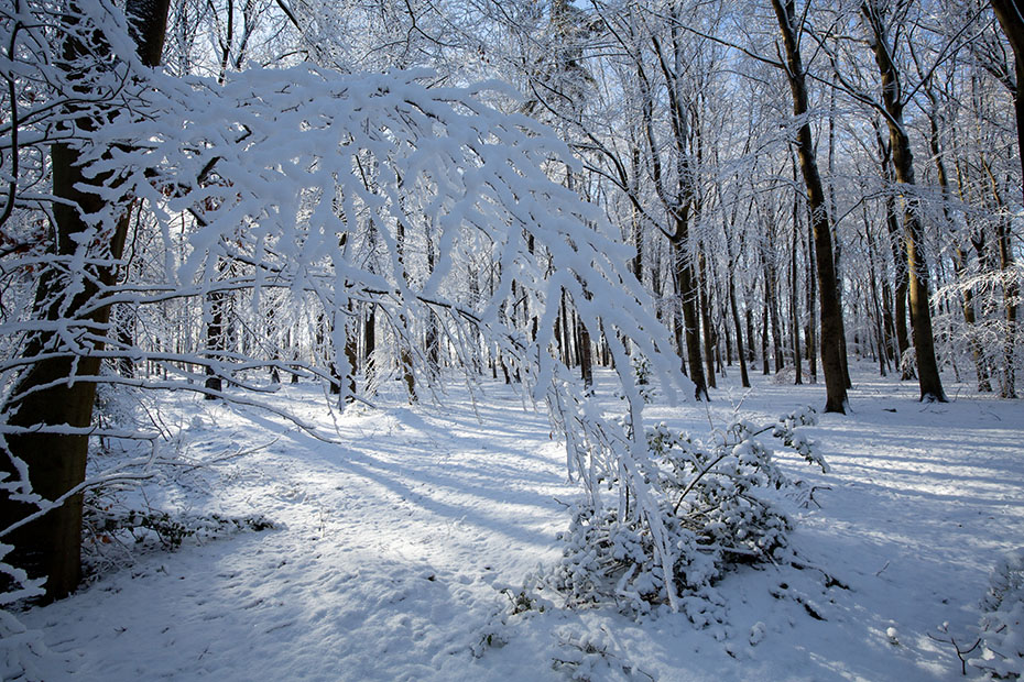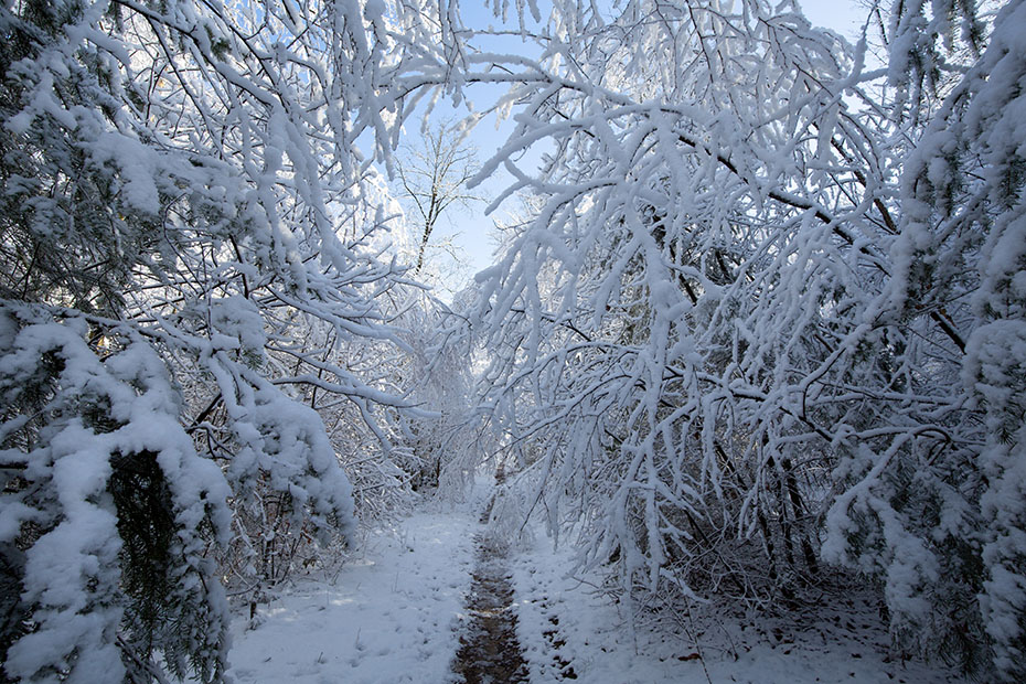 De jonge boompjes waren kromgebogen door de sneeuw en hingen als een toegangspoort over het pad. Zonder verdere toelichting neem ik jullie mee in dit feeërieke landschap.