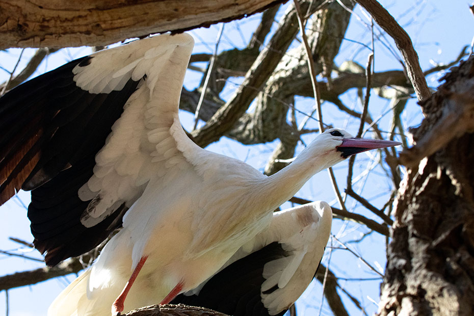 Het was een bijzondere gewaarwording om oog in oog te staan met een ooievaar. Toen de ooievaar de vleugels spreidde vroeg ik me wel af wat hij van plan was. Het verhaal van de terror-oehoe en de aanvallende buizerd schoot nog wel door mij heen. Het was geen fijn idee als de ooievaar met zijn pakweg 4 kilo en enorme snavel mij zou zien als een bedreiging…