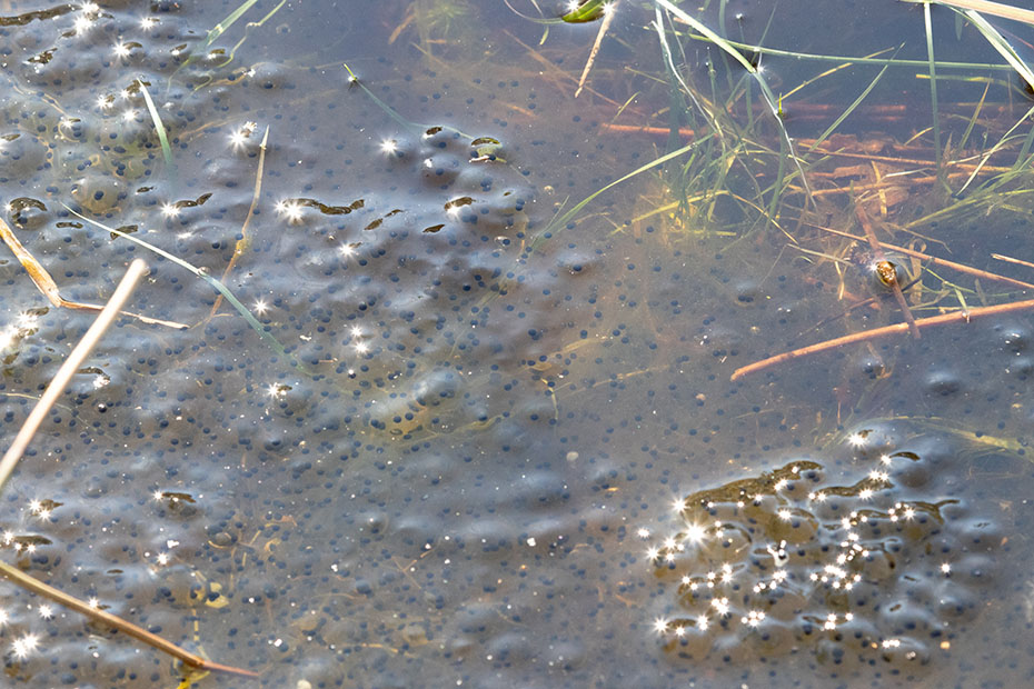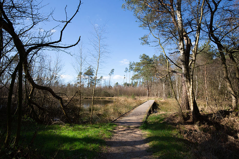In het ven aan weerszijden van dit vlonderpad zou de heikikker zijn te zien. Het was te koud en/of ik was te laat in het seizoen, want er was geen heikikker te zien. Wel lag er naast het vlonderpad een grote hoeveelheid kikkerdril.