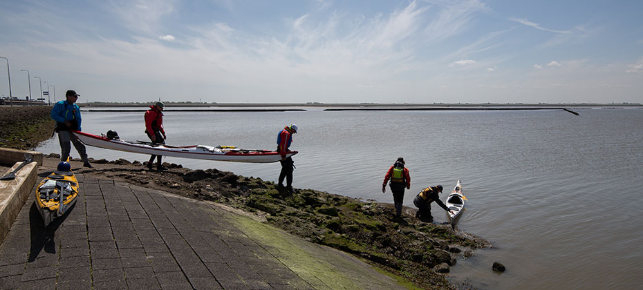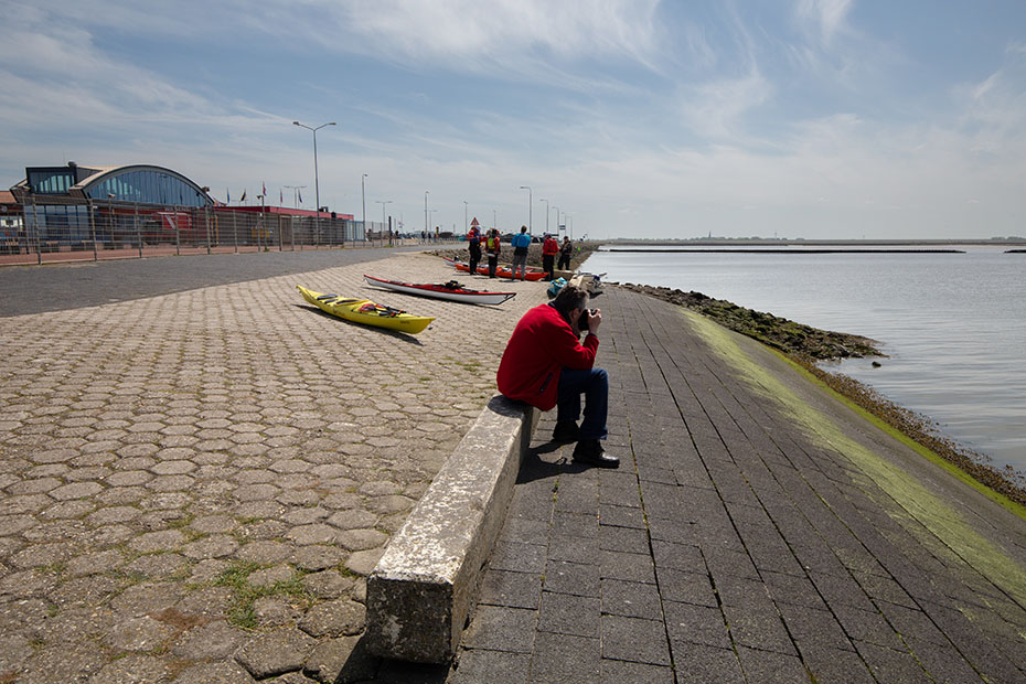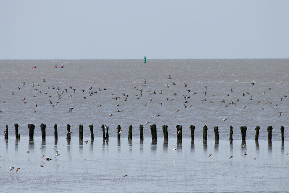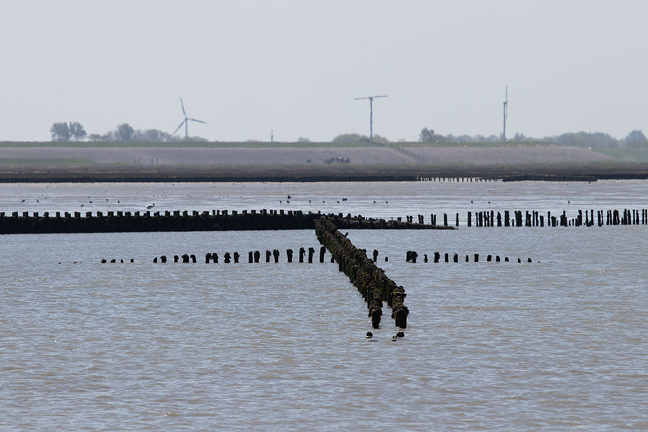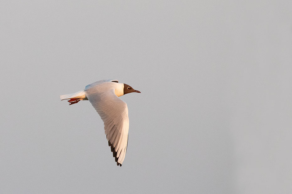 Op een strekdam zat een kokmeeuw. Deze werd opgeschrikt door onze komst en zocht een plekje elders.