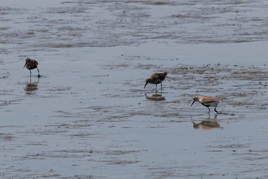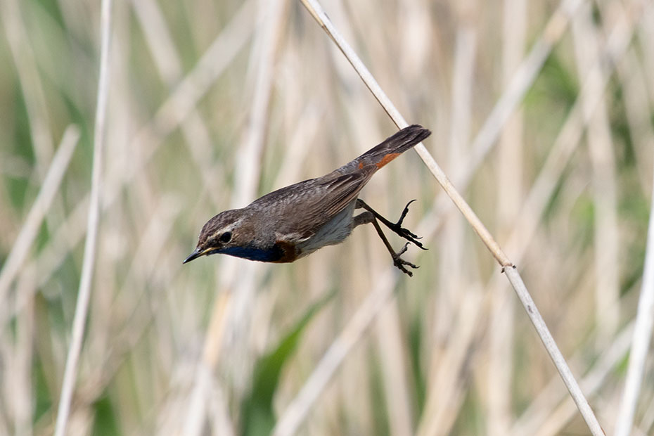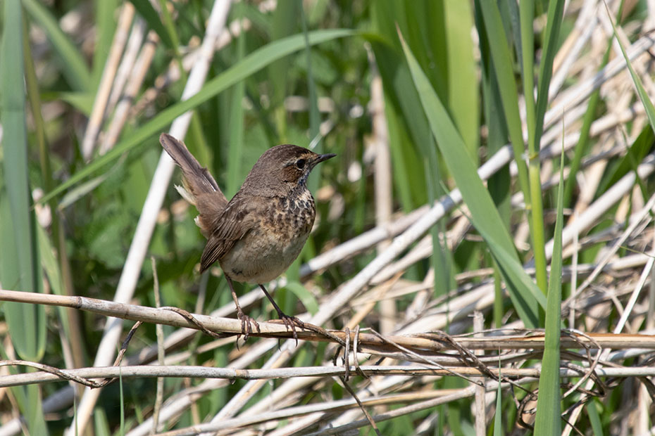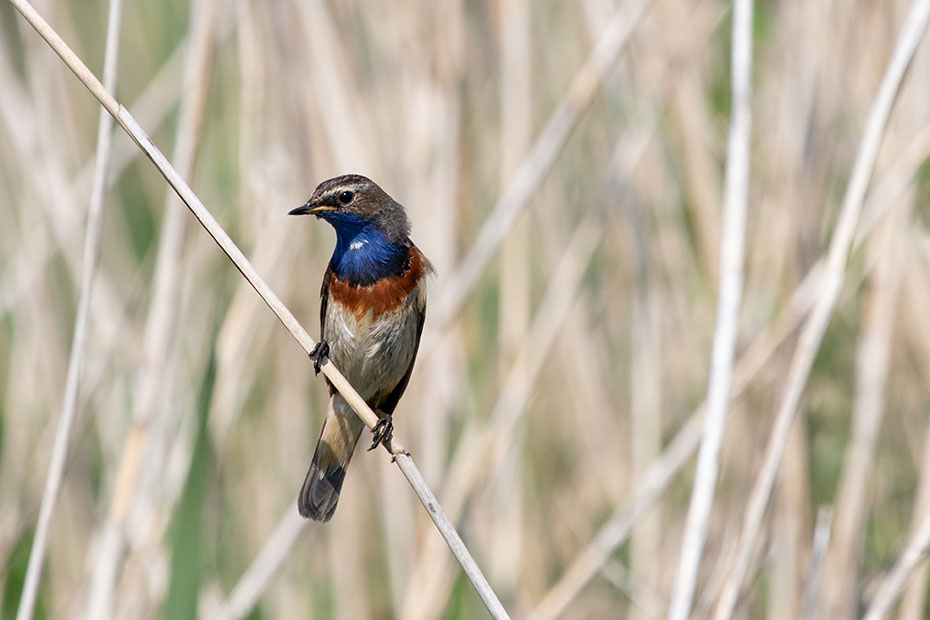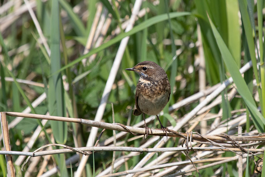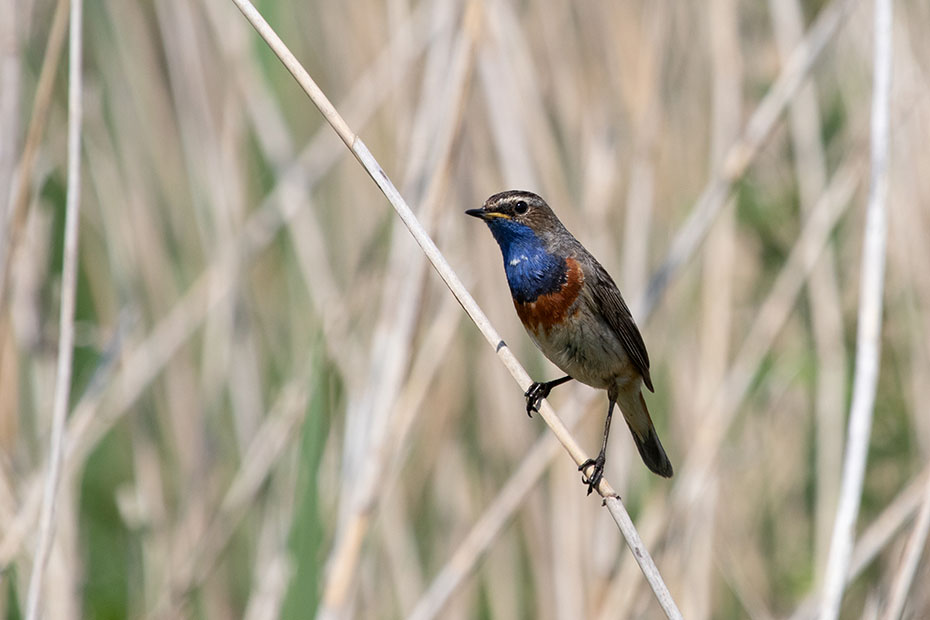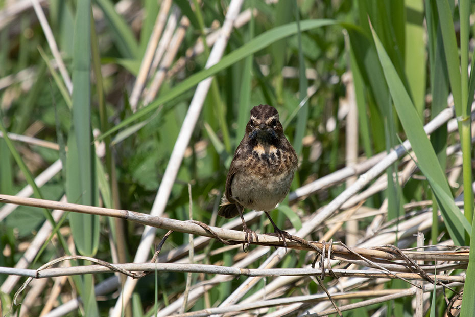 Een rietzanger, een vrouwtje rietgors en nog een rietzanger.