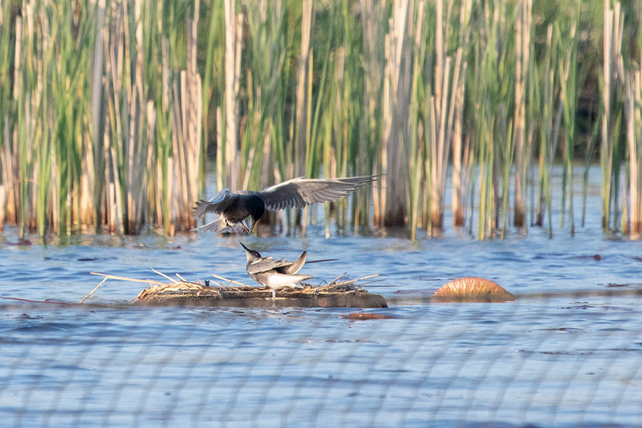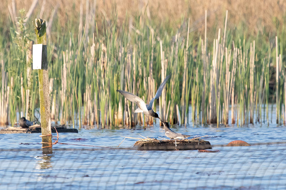 Op de Beulakerwiede worden de nestvlotjes weer bezet door de zwarte stern. Om ze niet te verstoren bleven we op grote afstand. Met de telelens en door te kroppen heb ik er deze fotoserie aan overgehouden.