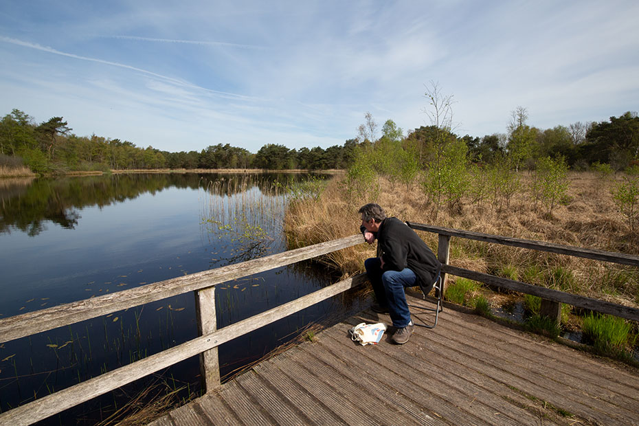Op deze zonnige dag – een geschikte dag om ringslangen te spotten – hadden we onafhankelijk van elkaar het plan opgevat om een kijkje te gaan nemen bij de ringslangen. En zo keken we samen uit over het water in afwachting van zwemmende ringslangen…
