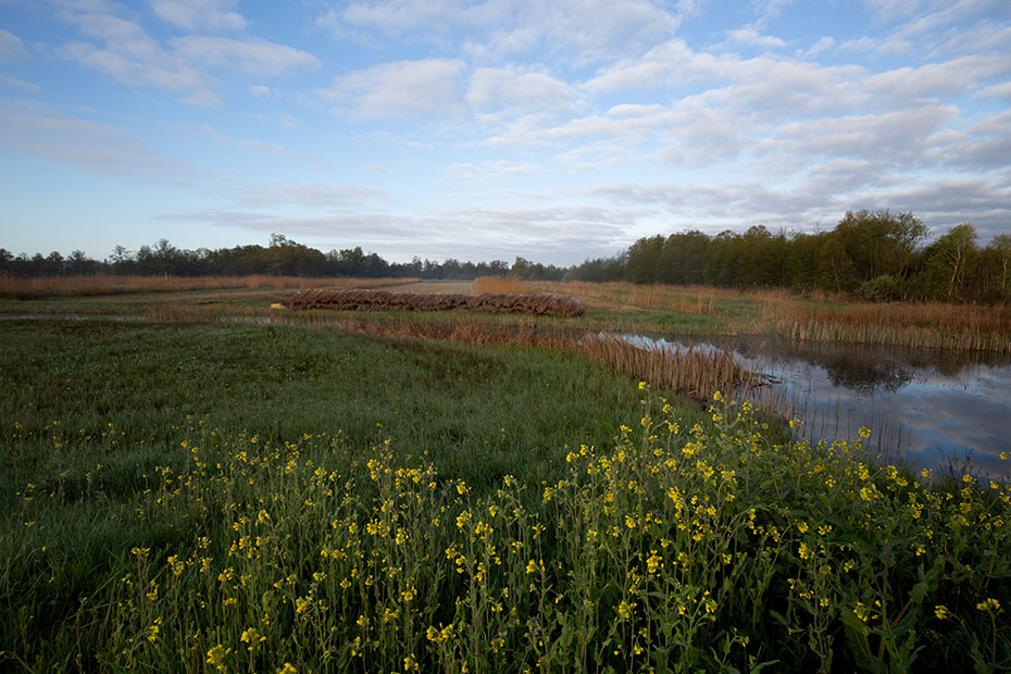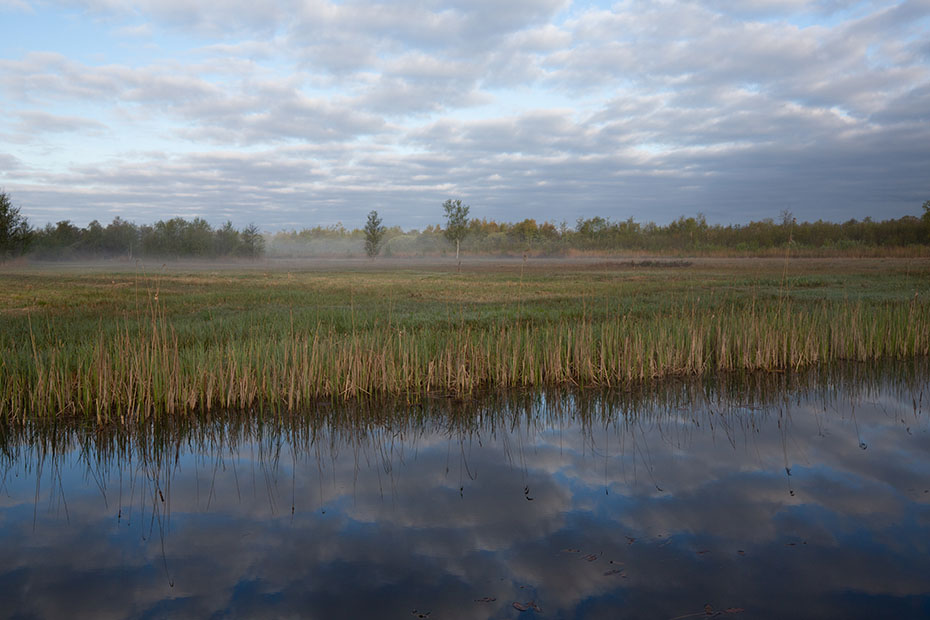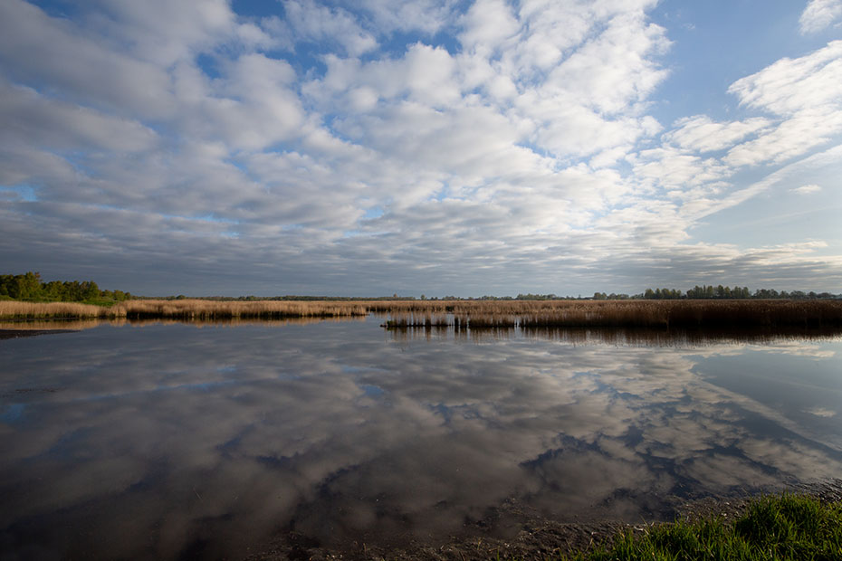 Na afloop van de lezing vroeg ik aan Philip waar en op wat voor moment op de dag ik de blauwborst zou kunnen vinden. Ik had dit opvallende vogeltje ooit al eens gefotografeerd op Texel, maar wilde wel een keer op herhaling. Van Philip kreeg ik een locatie en een tijdstip en zo gebeurde het dat ik om half zeven in de ochtend op weg ging naar De Weerribben. Het was een prachtige ochtend. De grondmist gaf een feeërieke sfeer aan het landschap.