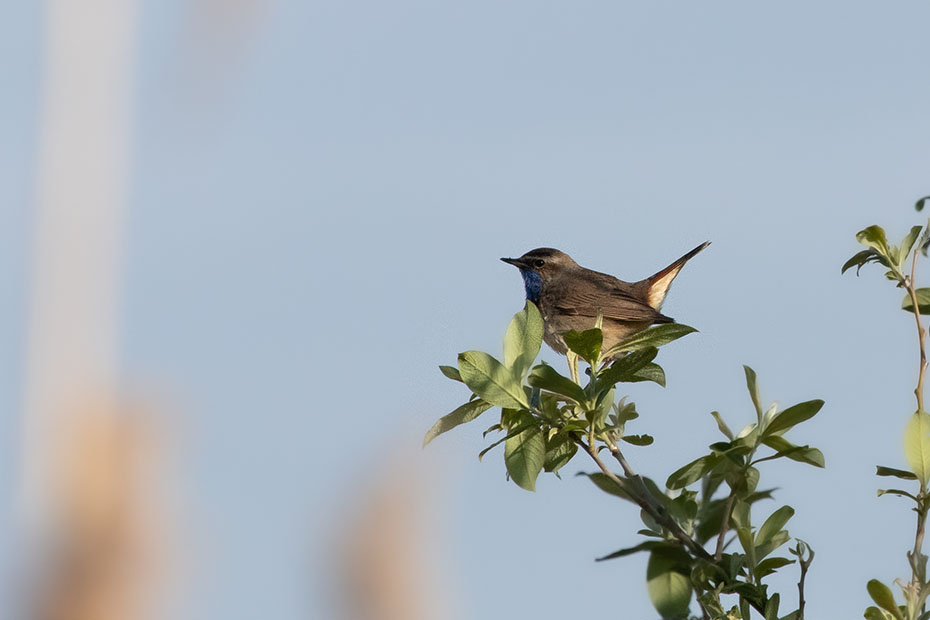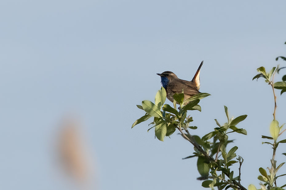 Even uurtje later had ik opnieuw geluk. Het mannetje kwam terug. Met deze foto’s ben ik al heel tevreden. De blauwborst zat een eindje bij mij vandaan en meer zoom (400 mm) heb ik niet. Ik had mezelf al wel voorgenomen om nog een keer op herhaling te gaan. Wie weet komt hij wat dichterbij zitten.
