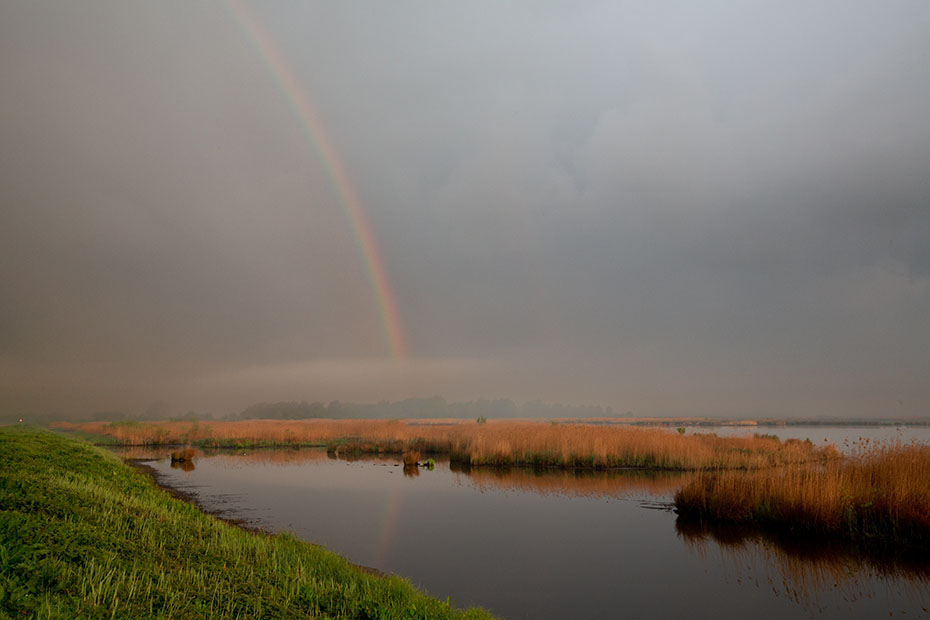 De zonsopkomst was veelbelovend, maar een kwartiertje later trok de lucht dicht. Ik trof het dan wel weer dat er een regenboog zichtbaar was.