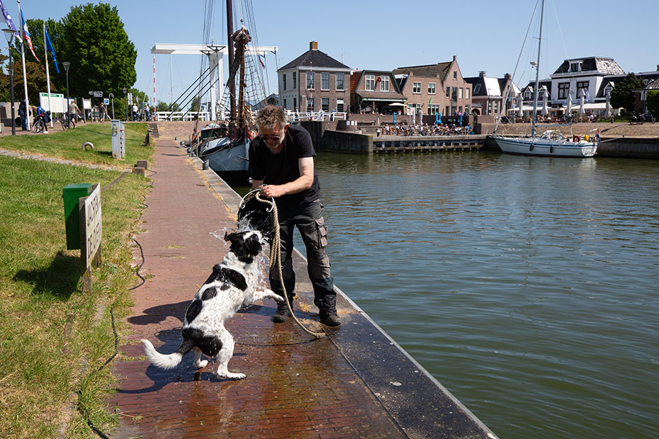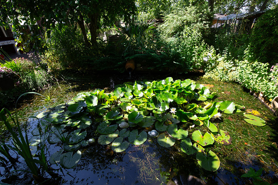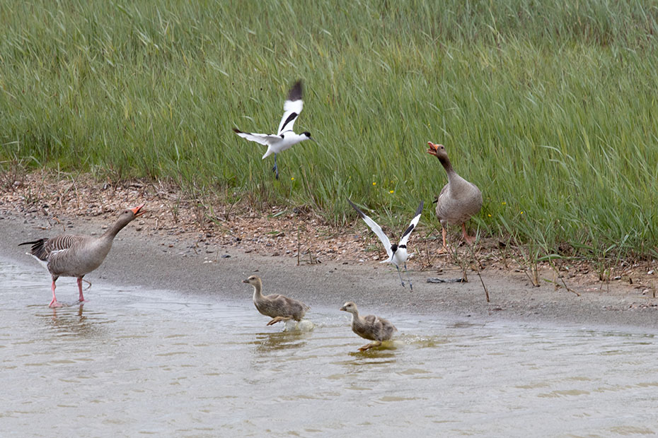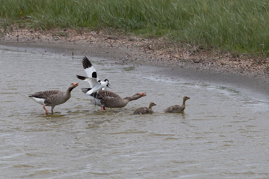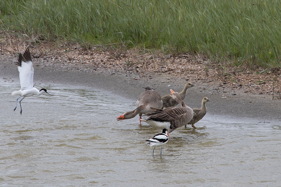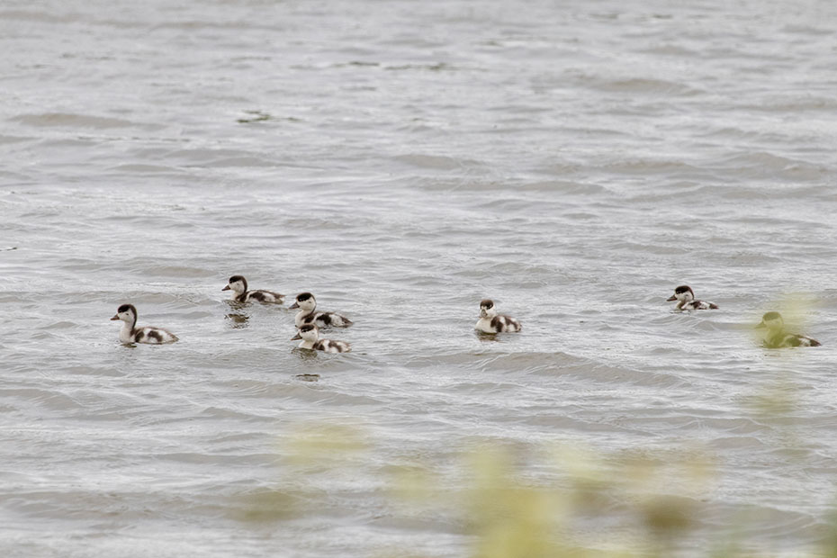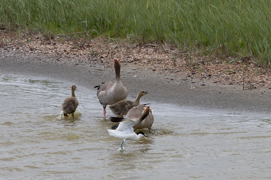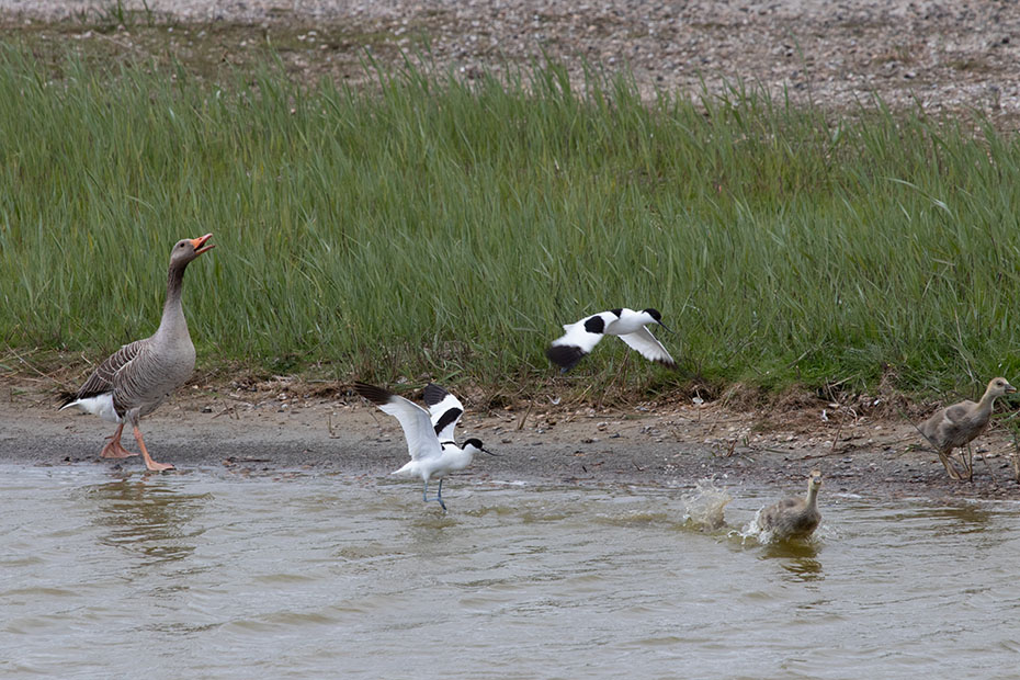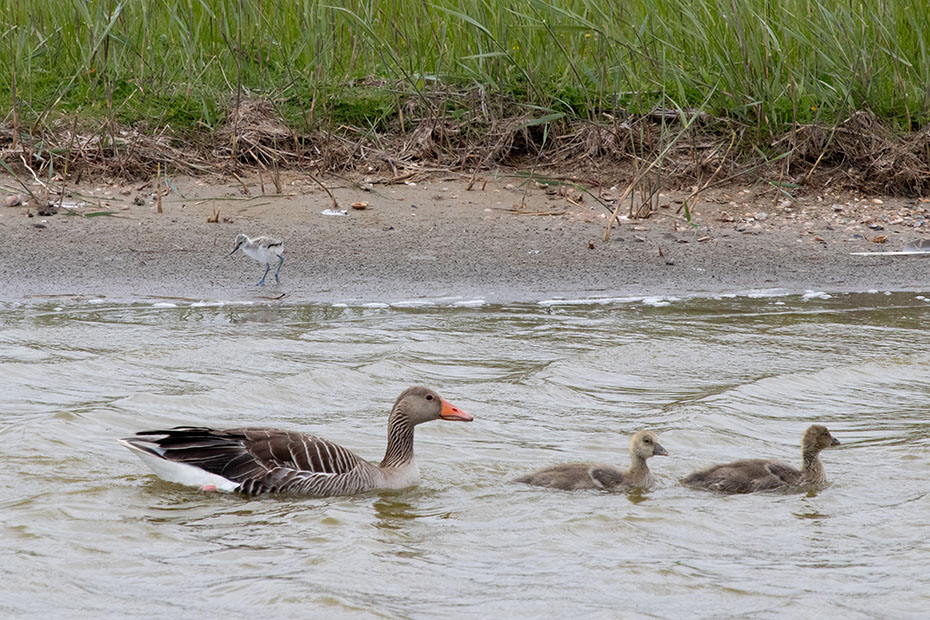 Zo rond 13 uur was er voor deze ouder en haar jongen een moment van rust. De zon brandde fel op het vlotje en het was warm. Het vrouwtje leek haar jongen bescherming te geven tegen de felle zon. Lang duurde dat rustmoment niet of de jongen piepten alweer onder haar vleugels vandaan.