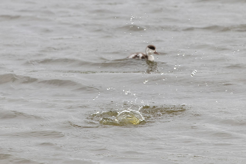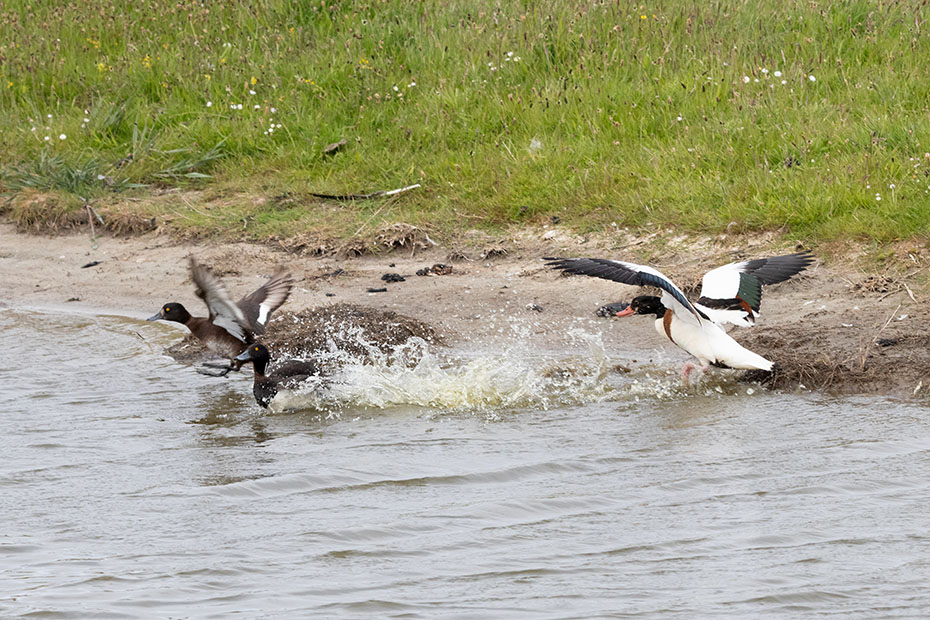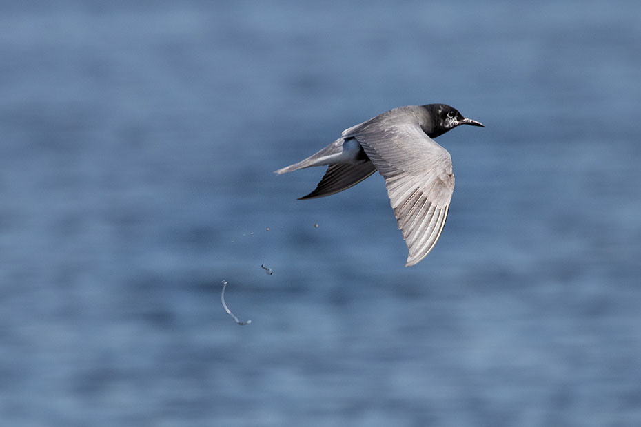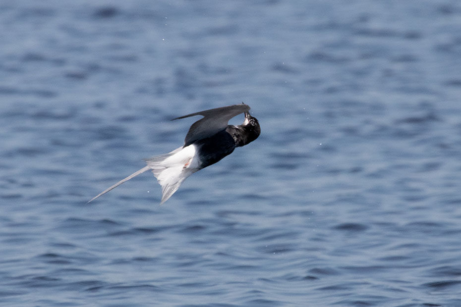 Het mannetje kwam thuis met een grote vangst. Te groot, zo bleek al snel. Het jong kreeg het visje in de snavel geduwd, maar die wist er geen raad mee. Vaders hielp een handje door de vis in de lengterichting te leggen, maar ook dat ging niet passen. Het jong liet het visje naast zich in het nest vallen. Toen het mannetje opnieuw voedsel kwam brengen nam hij de te grote vis mee en vloog daarmee weg. Direct werd hij achterna gezeten door andere sterns die ook wel zin hadden in een lekker hapje.