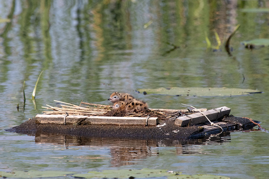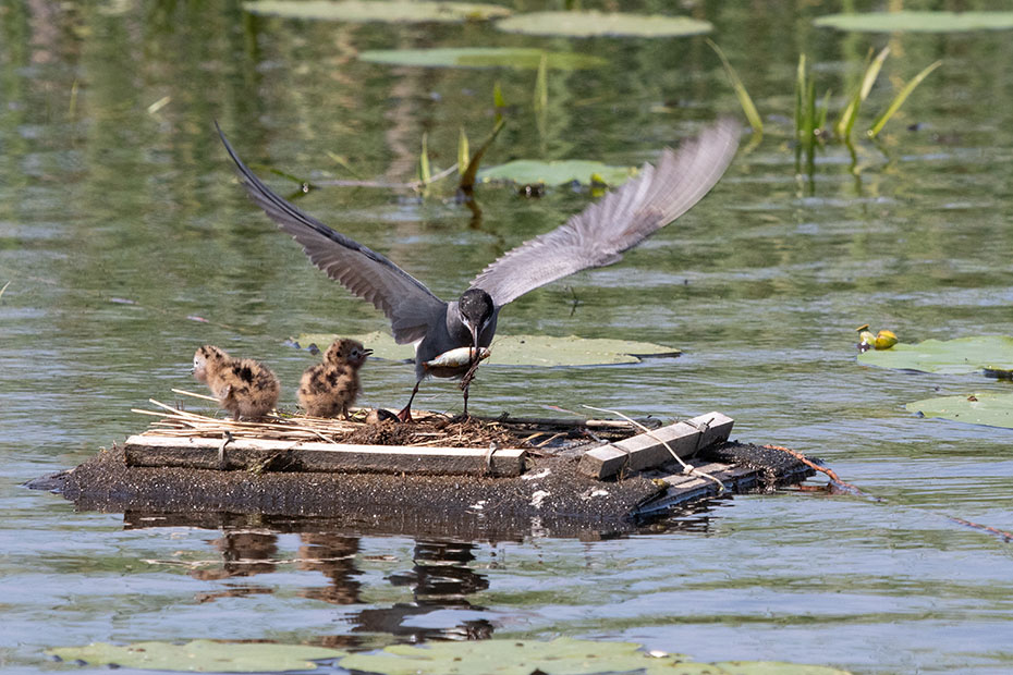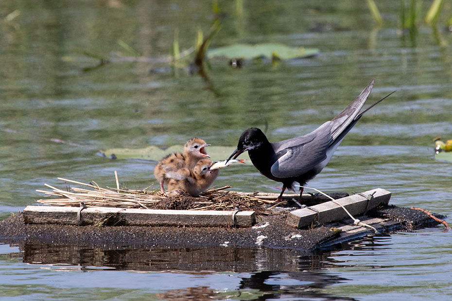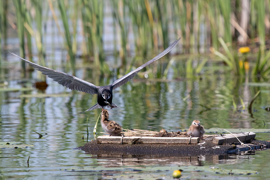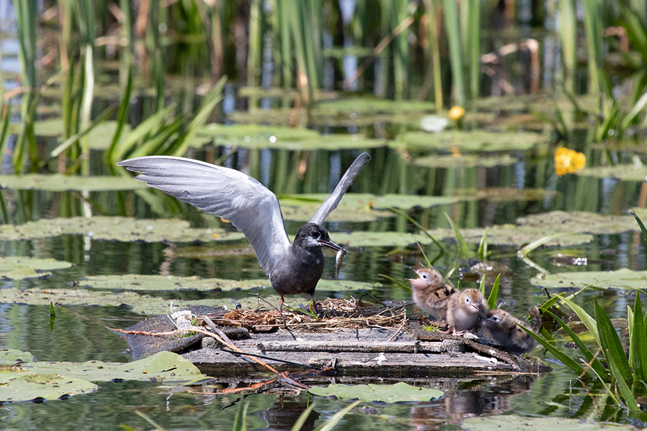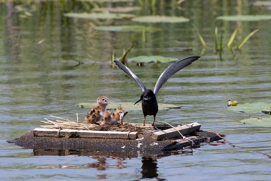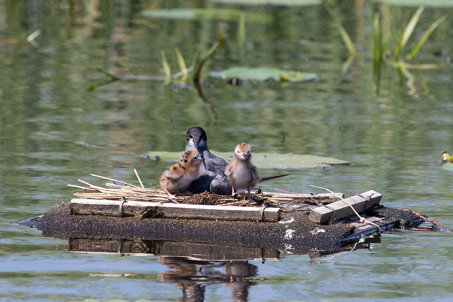 In De Wieden plaatsen vrijwilligers van Natuurmonumenten ieder jaar nestvlotjes voor de zwarte stern. Zwarte sterns hebben moeite om zelf een nest te maken en broeden daarom op deze nestvlotjes.
