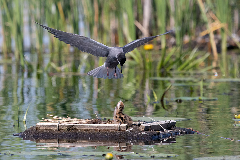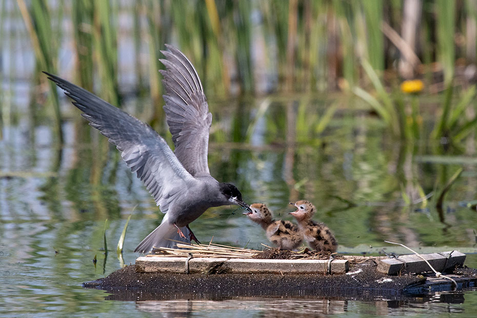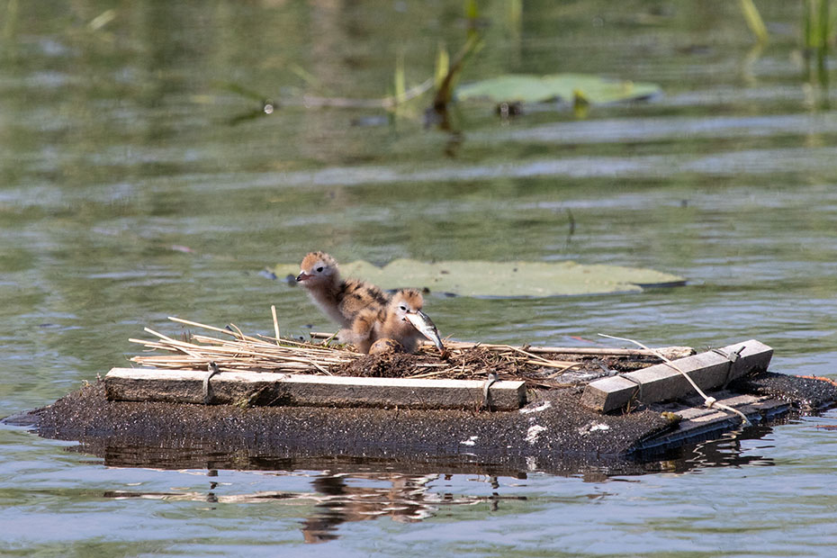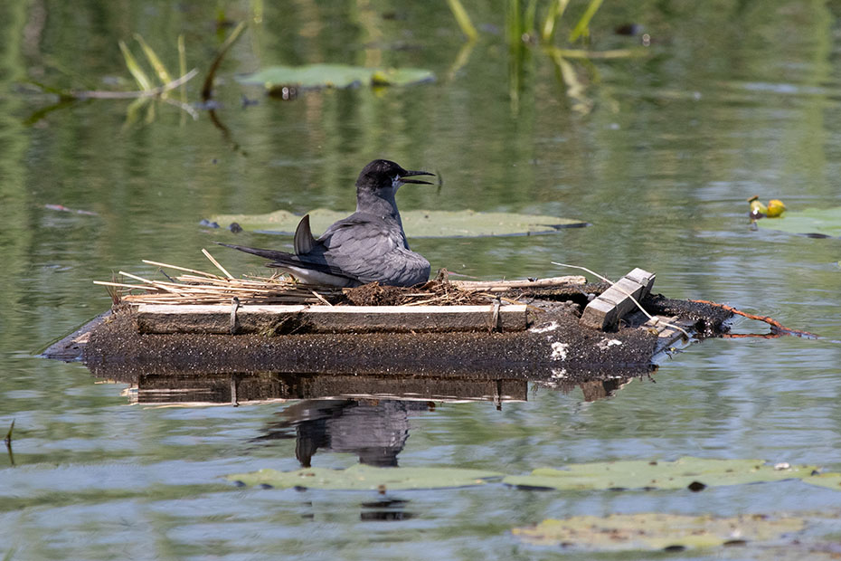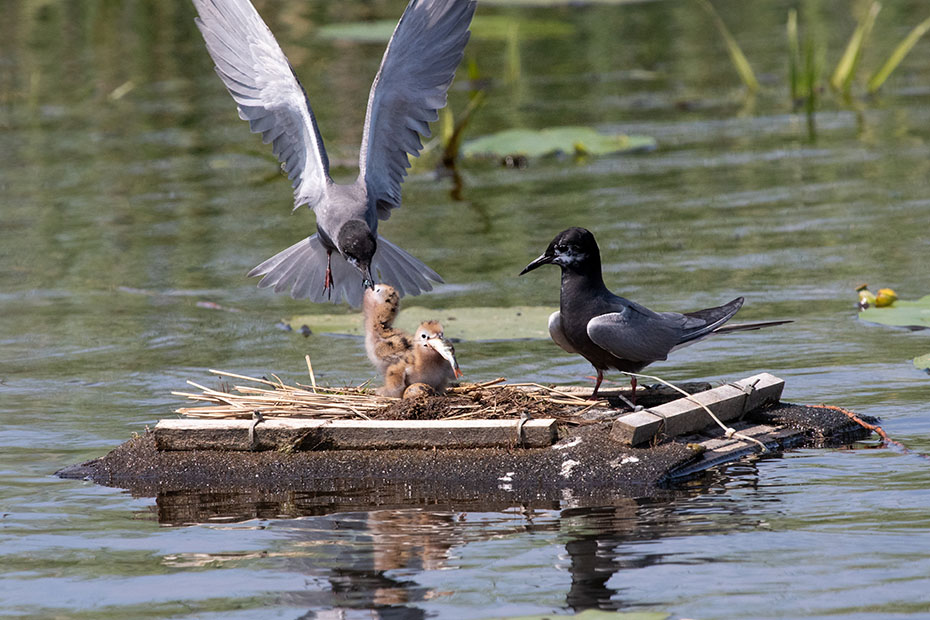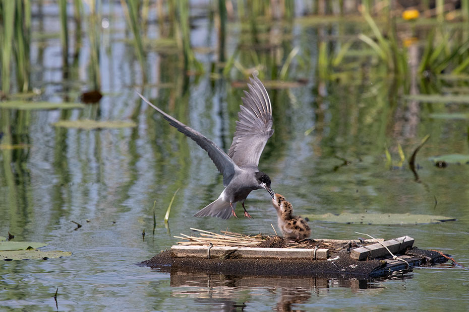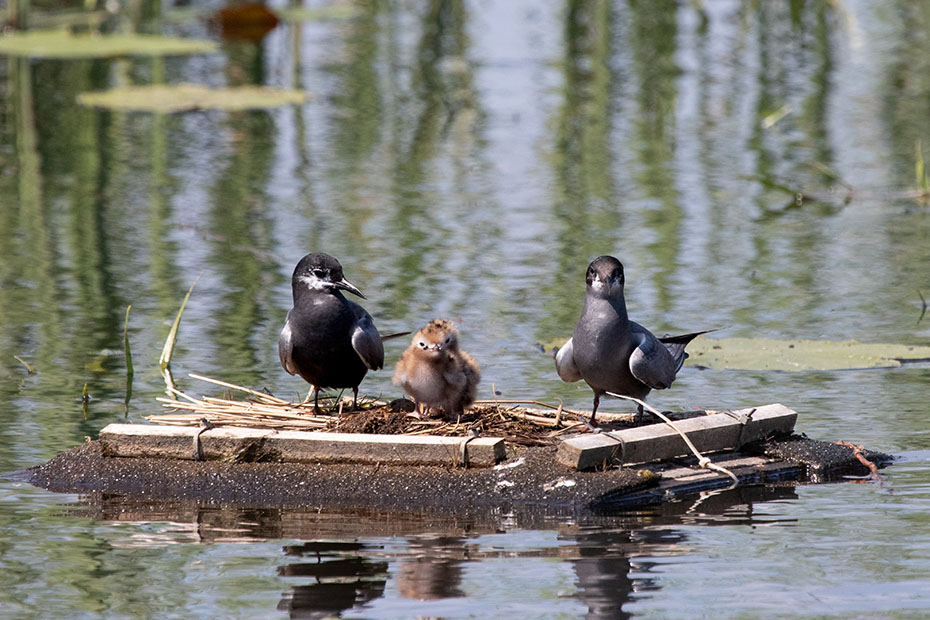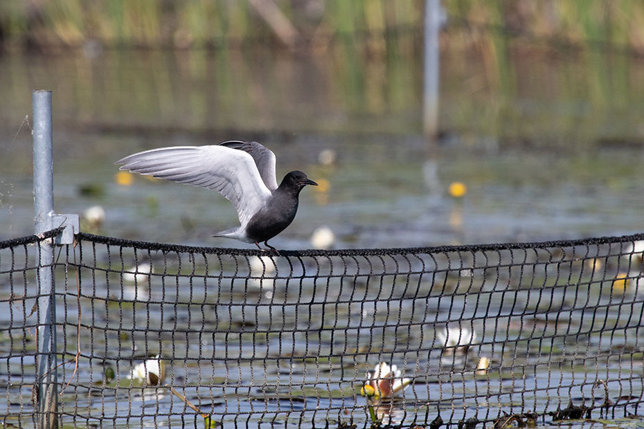 In De Wieden plaatsen vrijwilligers van Natuurmonumenten ieder jaar nestvlotjes voor de zwarte stern. Zwarte sterns hebben moeite om zelf een nest te maken en broeden daarom op deze nestvlotjes.