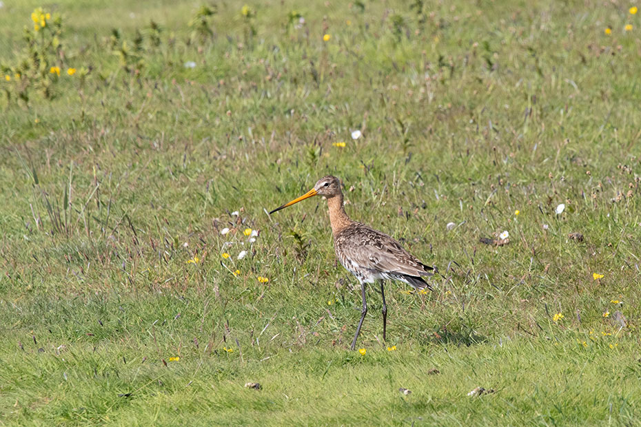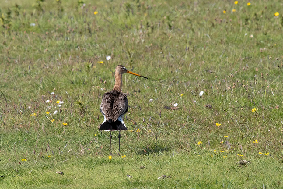 In het kruidenrijke grasland in Waalenburg landde een grutto. Jammer genoeg reageerde ik net te laat voor de landing.