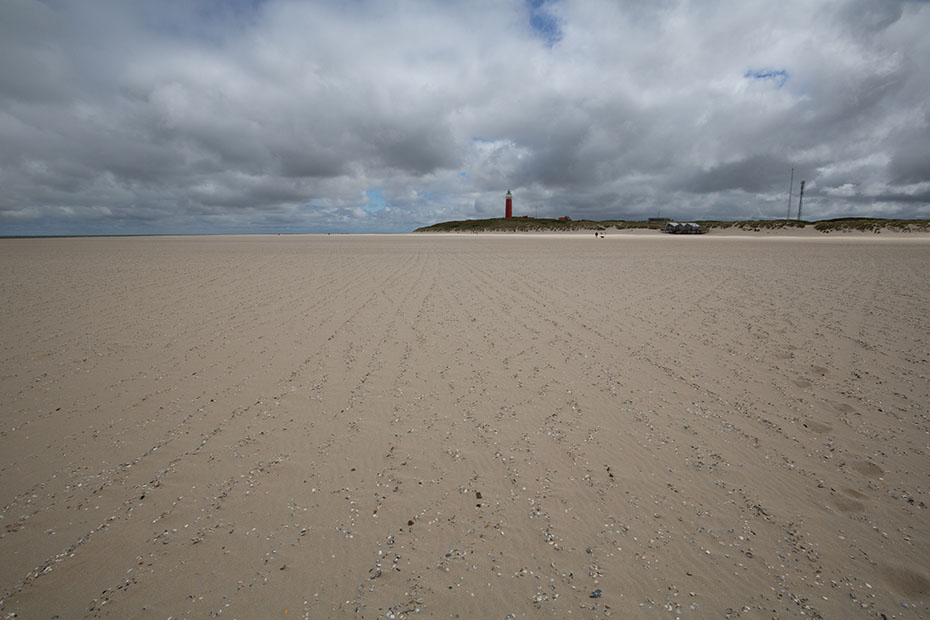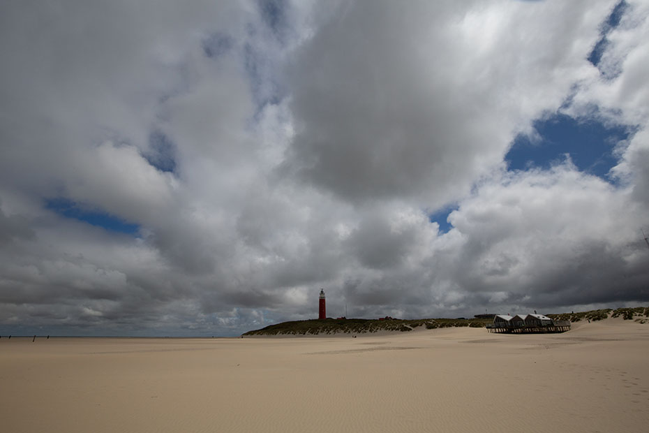 Even later parkeerden we de auto bij de vuurtoren en begonnen aan de wandeling. Het was half bewolkt. Voor het fotograferen was dit een prachtige lucht. Het is zo mooi om het samenspel tussen de wolken en de zon te zien. Het was wel koud tijdens de laatste vakantiedagen op Texel. De noordenwind voerde koude lucht aan. De temperatuur kwam niet boven de 13 graden.