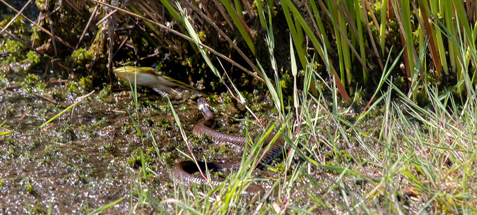 Bij de laatste foto had ik een te langzame sluitertijd. Een ringslang met een kikker in de bek was ook wel welkom geweest. 😉