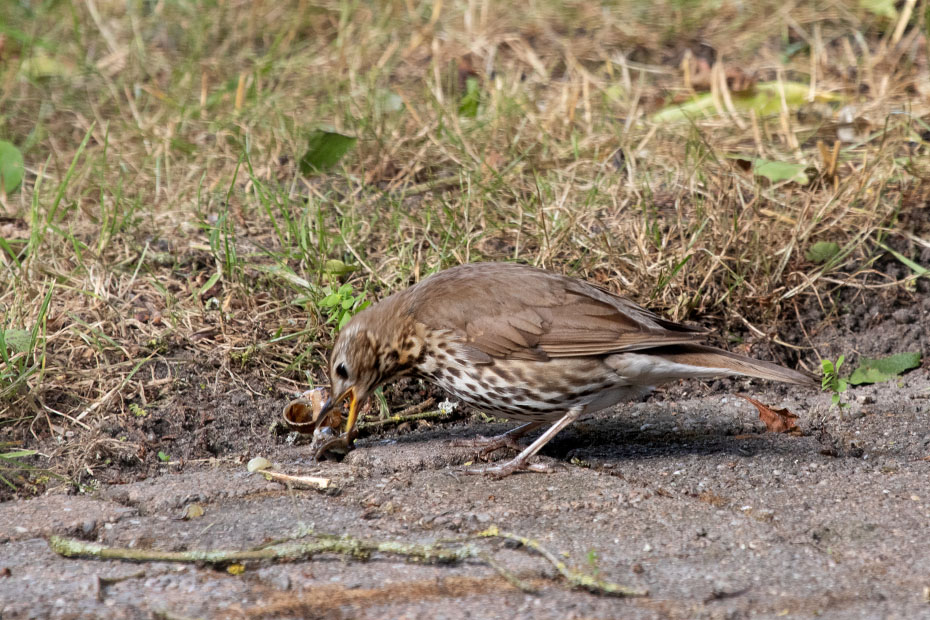 Een bekende eigenschap van de zanglijster is het stukslaan van slakkenhuisjes op stenen. Ik heb de lijster een keer kunnen betrappen.