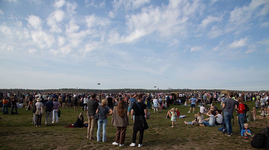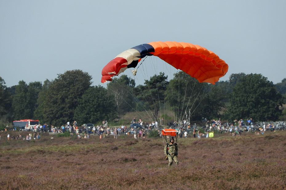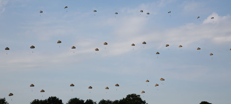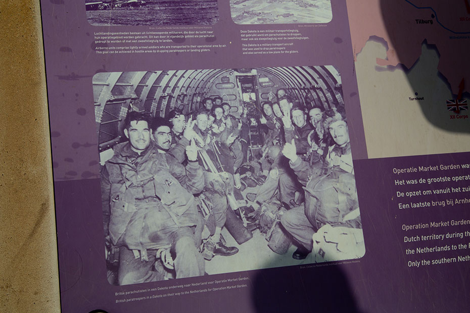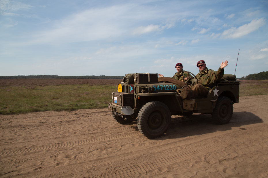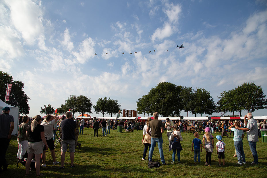 We waren nog maar net gearriveerd bij het terrein toen we de parachutisten zagen springen. Het geluid van de oude Dakota’s, de achter elkaar springende parachutisten en de lucht vol met zwevende parachutes het was heel indrukwekkend. Laat staan als dat er duizenden zijn…