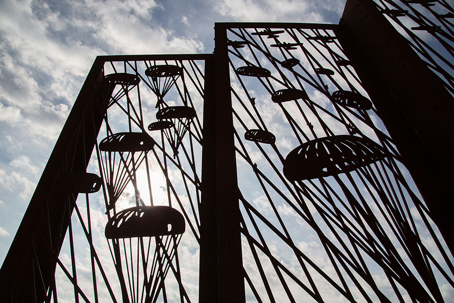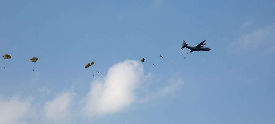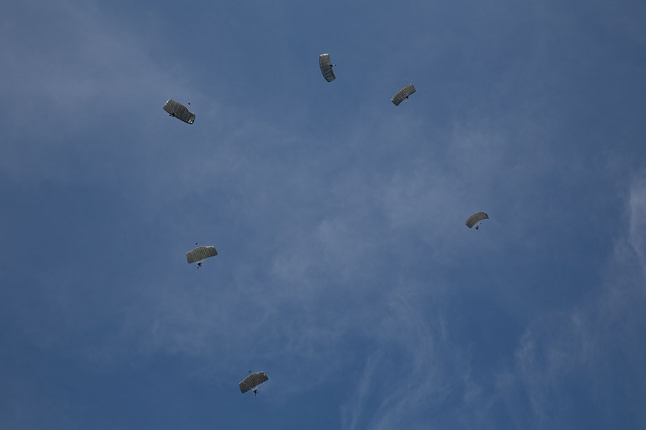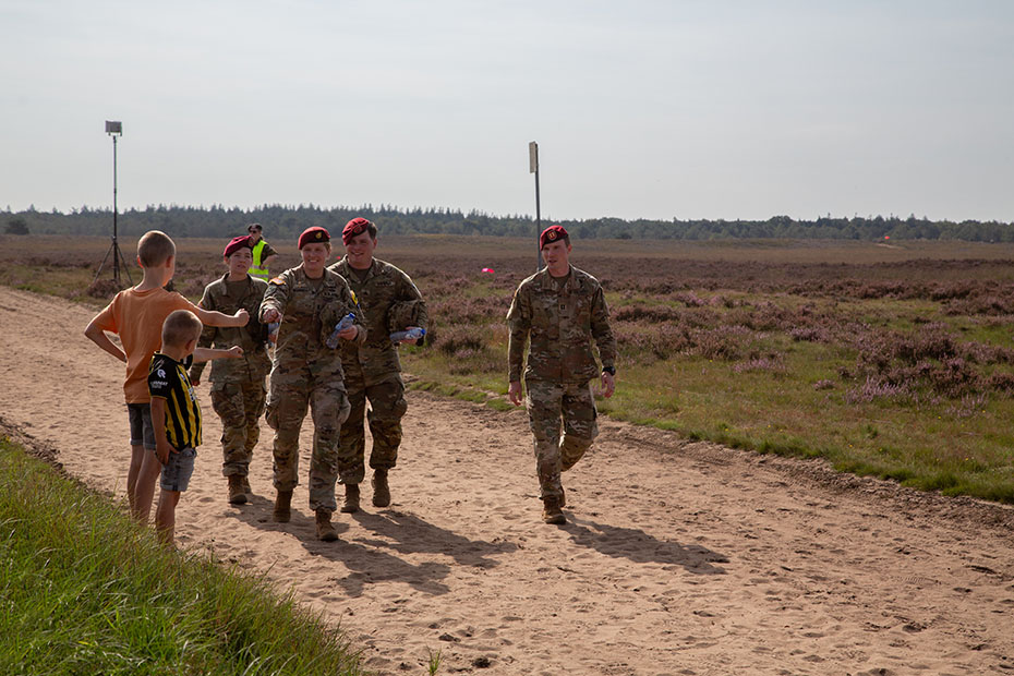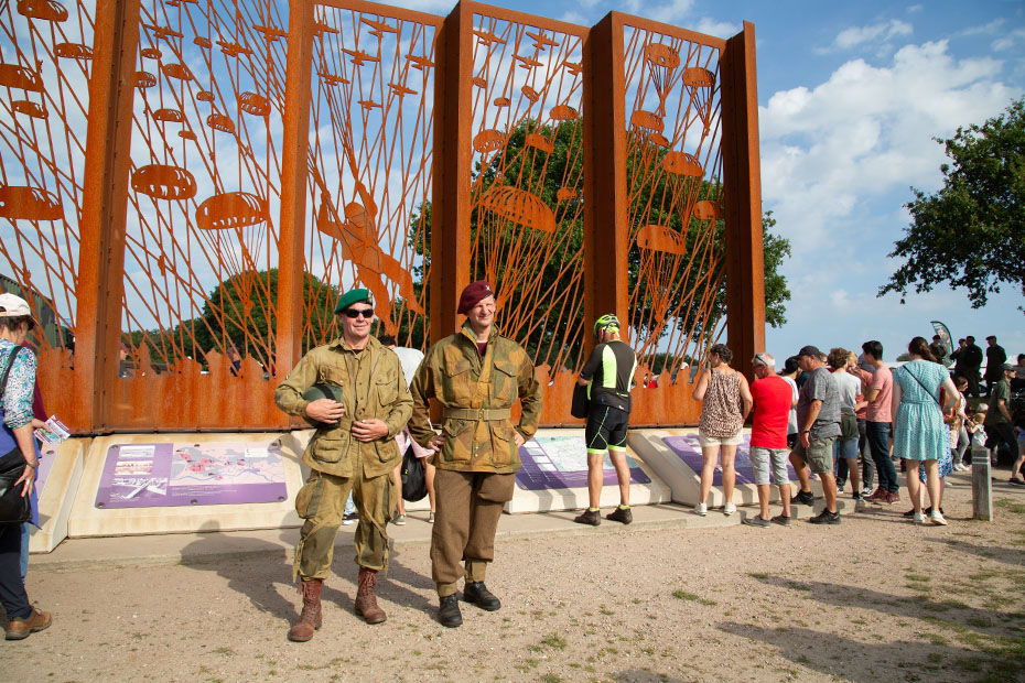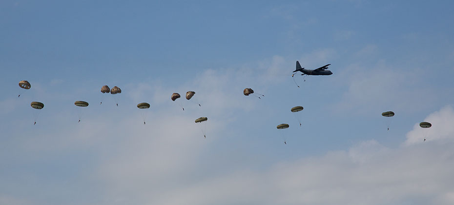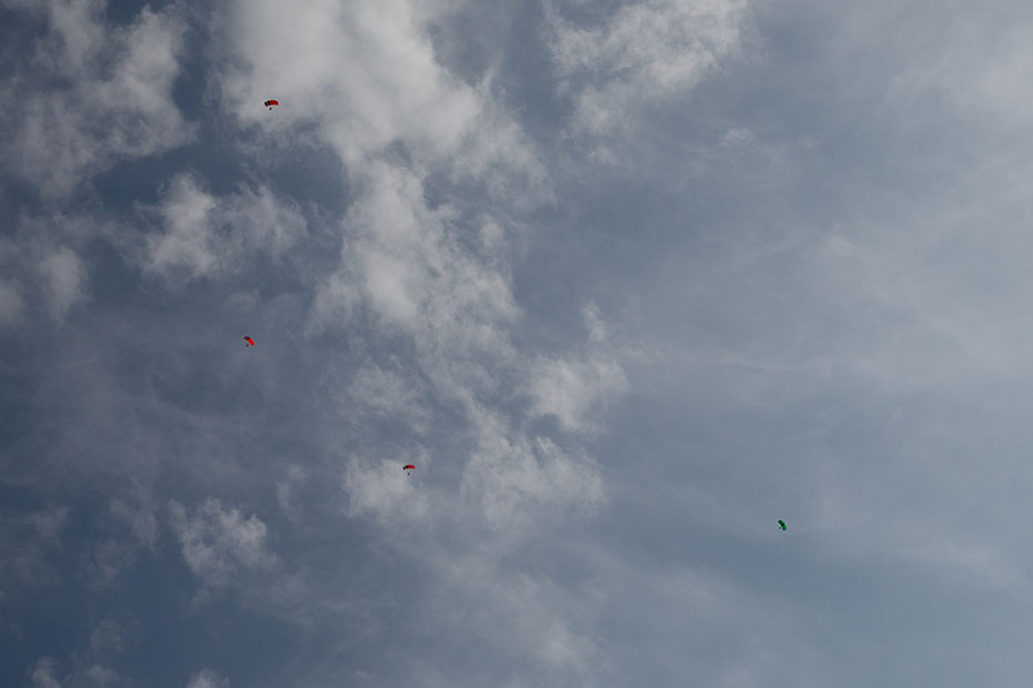 We waren nog maar net gearriveerd bij het terrein toen we de parachutisten zagen springen. Het geluid van de oude Dakota’s, de achter elkaar springende parachutisten en de lucht vol met zwevende parachutes het was heel indrukwekkend. Laat staan als dat er duizenden zijn…