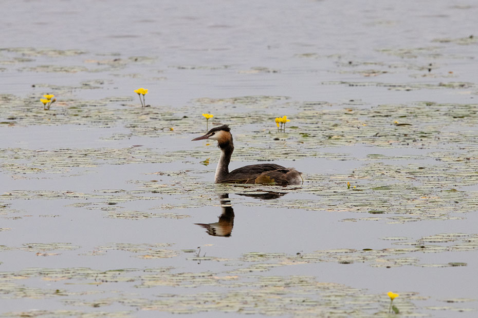 Deze serie maakte ik met mijn nieuwe 150-600 mm Sigma objectief. Ondanks het grote bereik moest ik de foto’s kroppen. De kwaliteit van deze fotoserie laat flink te wensen over. Ik had de foto’s hier anders niet getoond ware het niet dat het een bijzondere waarneming is. Om deze serie nog een beetje kleur te geven sluit ik af met een fuut tussen de watergentiaan…