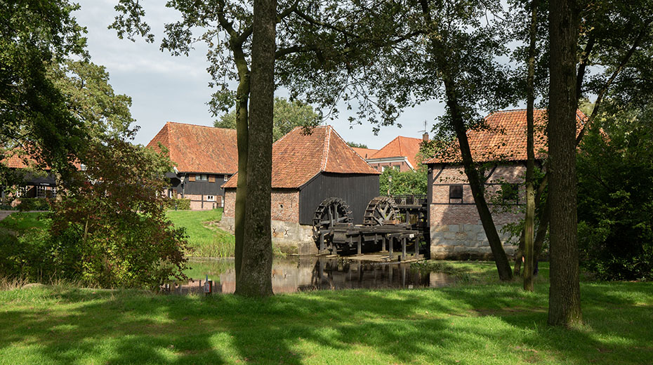 Tijdens onze vakantie in de Achterhoek bracht ik een bezoek aan de Oostendorper Watermolen in Haaksbergen. De Oostendorper Watermolen is een dubbele watermolen uit 1548 met drie onderslagraderen. De molen werd gebruikt voor olie en koren. Het onderstuk van de molens bestaat uit Bentheimer steen, het bovenste gedeelte uit vakwerk.