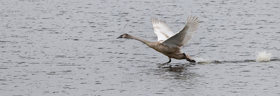 Mijn volgende doel was vogelkijkhut, de Twitterhut. Ik stond goed en wel in de hut toen een jonge knobbelzwaan begon aan de start…